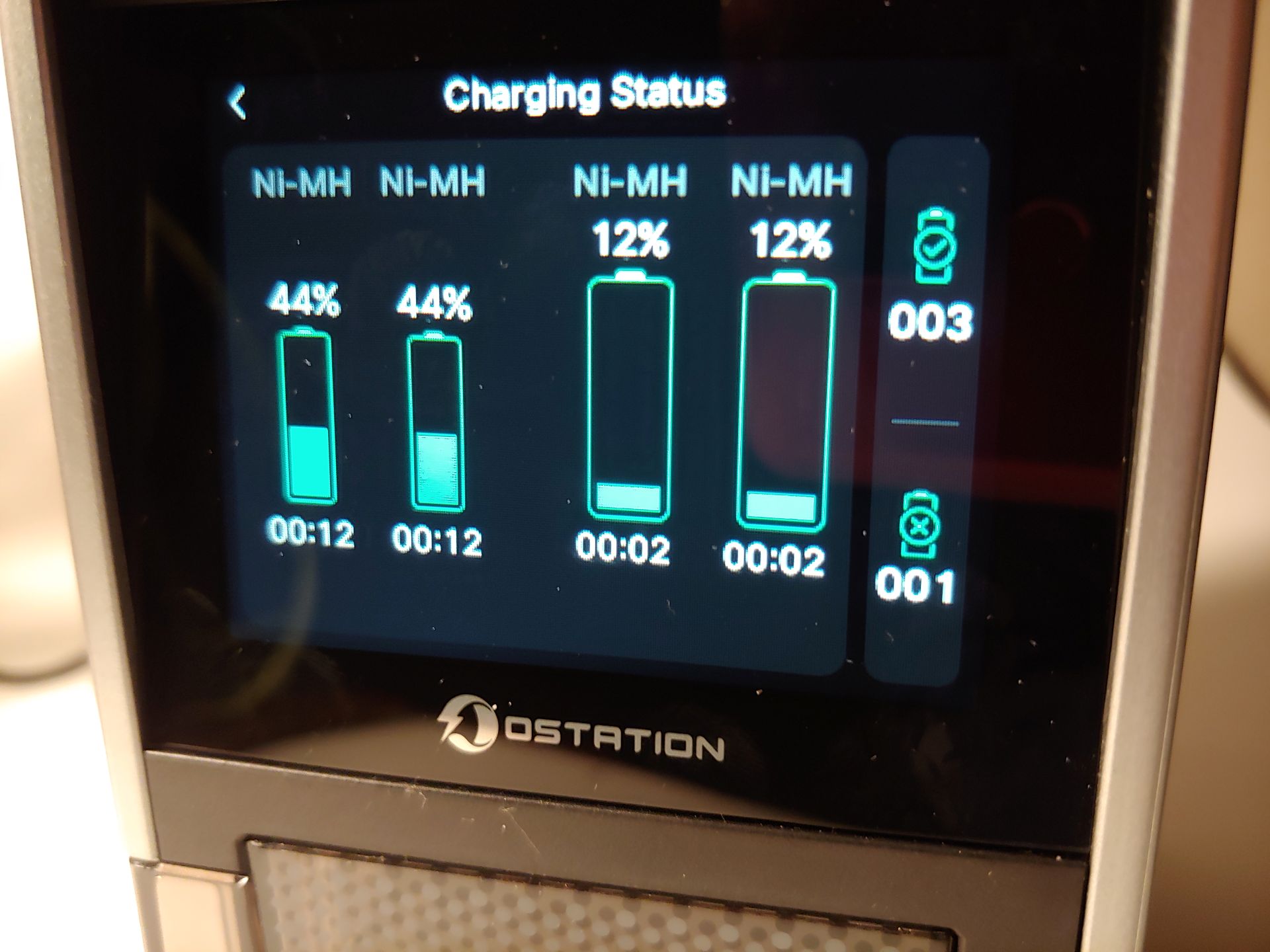 L'Ostation 2 Pro a chargé deux batteries Ni-MH AA de 2 200 mAh de 1 % à 99 % en 40 à 48 minutes environ, et de 99 % à 100 % en 21 minutes supplémentaires pendant le test. Deux piles AAA Ni-MH de 950 mAh se sont chargées de 1 % à 99 % en 50 minutes environ, et de 99 % à 100 % en 20 minutes supplémentaires. L'appareil ne chargeant qu'un maximum de deux piles AA et de deux piles AAA à la fois, une charge maximale de 12 piles AA et de 12 piles AAA épuisées prendra plus de six heures.