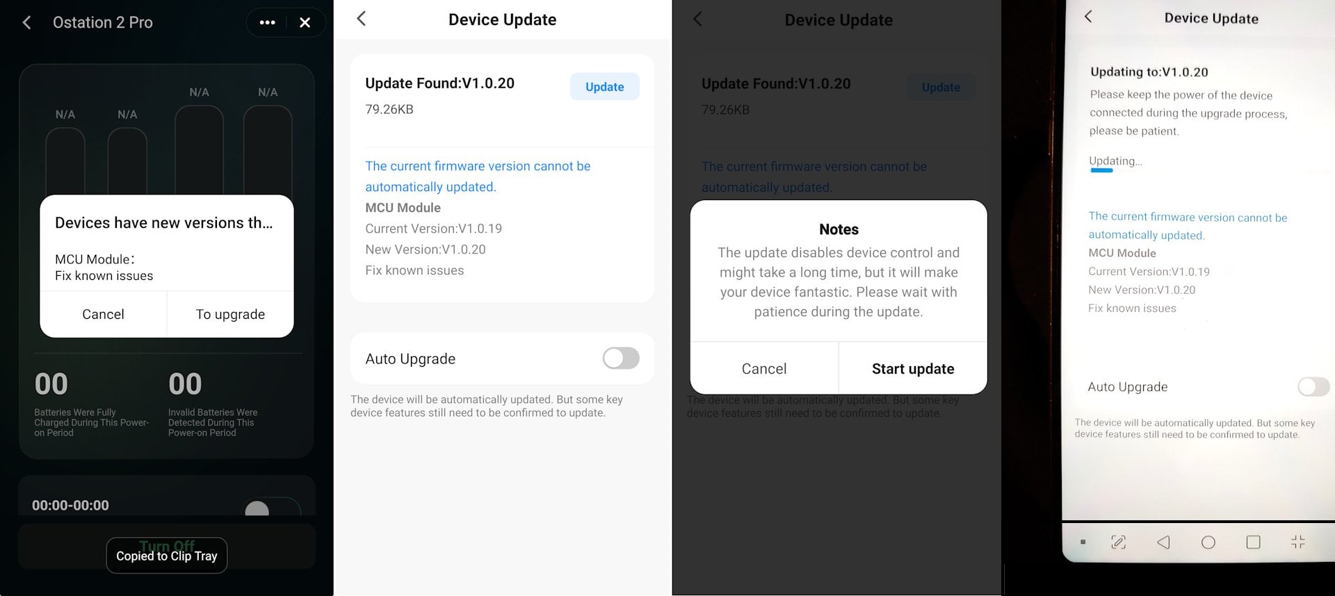 L'écran tactile peut être utilisé pour contrôler la charge et modifier les quelques paramètres disponibles. L'application pour smartphone permet aux utilisateurs de contrôler la charge à distance, mais elle nécessite une connexion Wi-Fi 2,4 Ghz, et non 5 Ghz. La station Ostation ne prend pas en charge les connexions Wi-Fi directes, ce qui limite l'utilisation de l'application à l'extérieur lorsque la station Ostation est alimentée par des générateurs ou par l'énergie solaire.