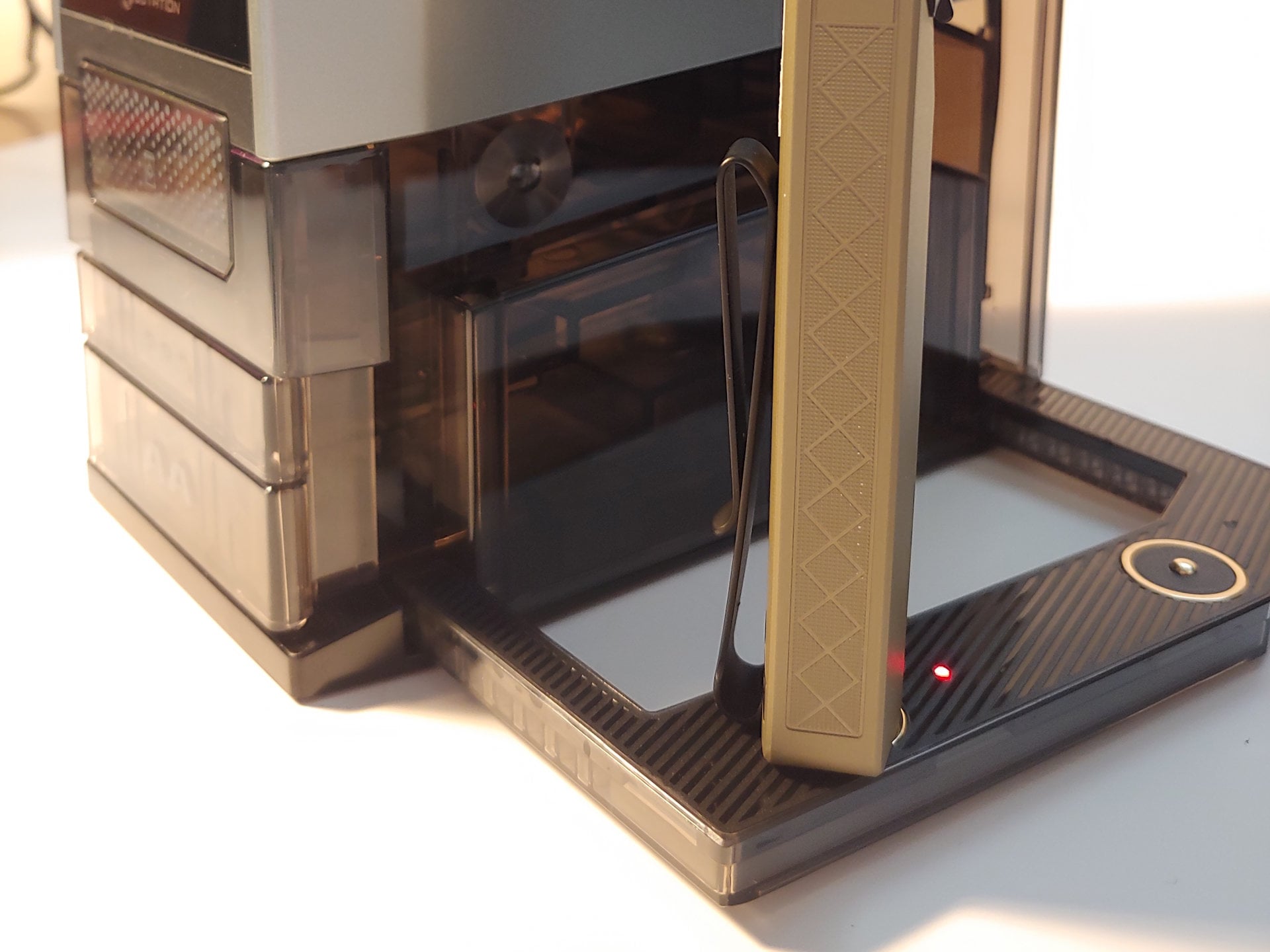 Le chargeur Olight Ostation 2 Pro pèse plus lourd que les chargeurs ordinaires car la tour comprend des moteurs et des mécanismes de chargement automatique des piles.