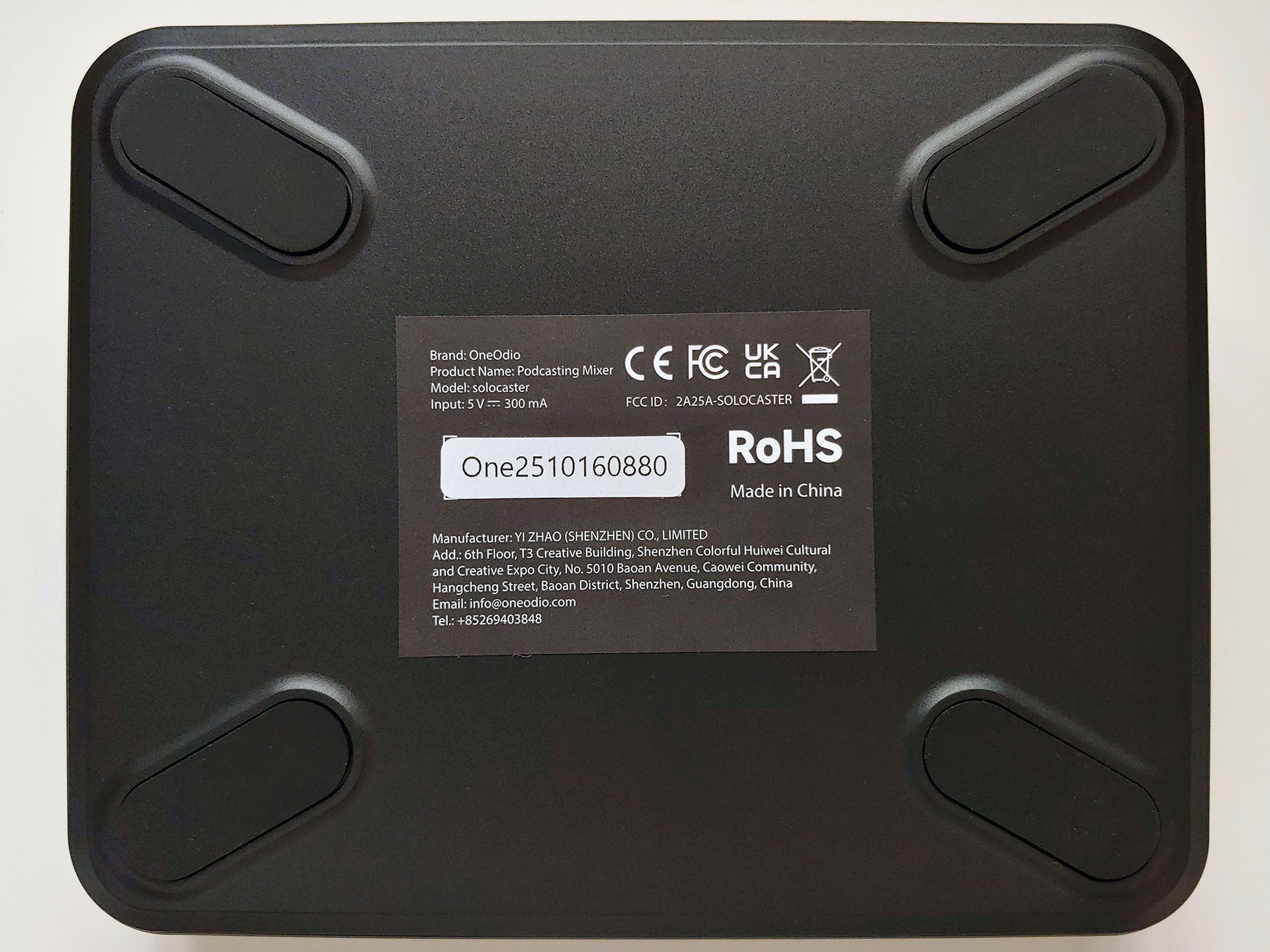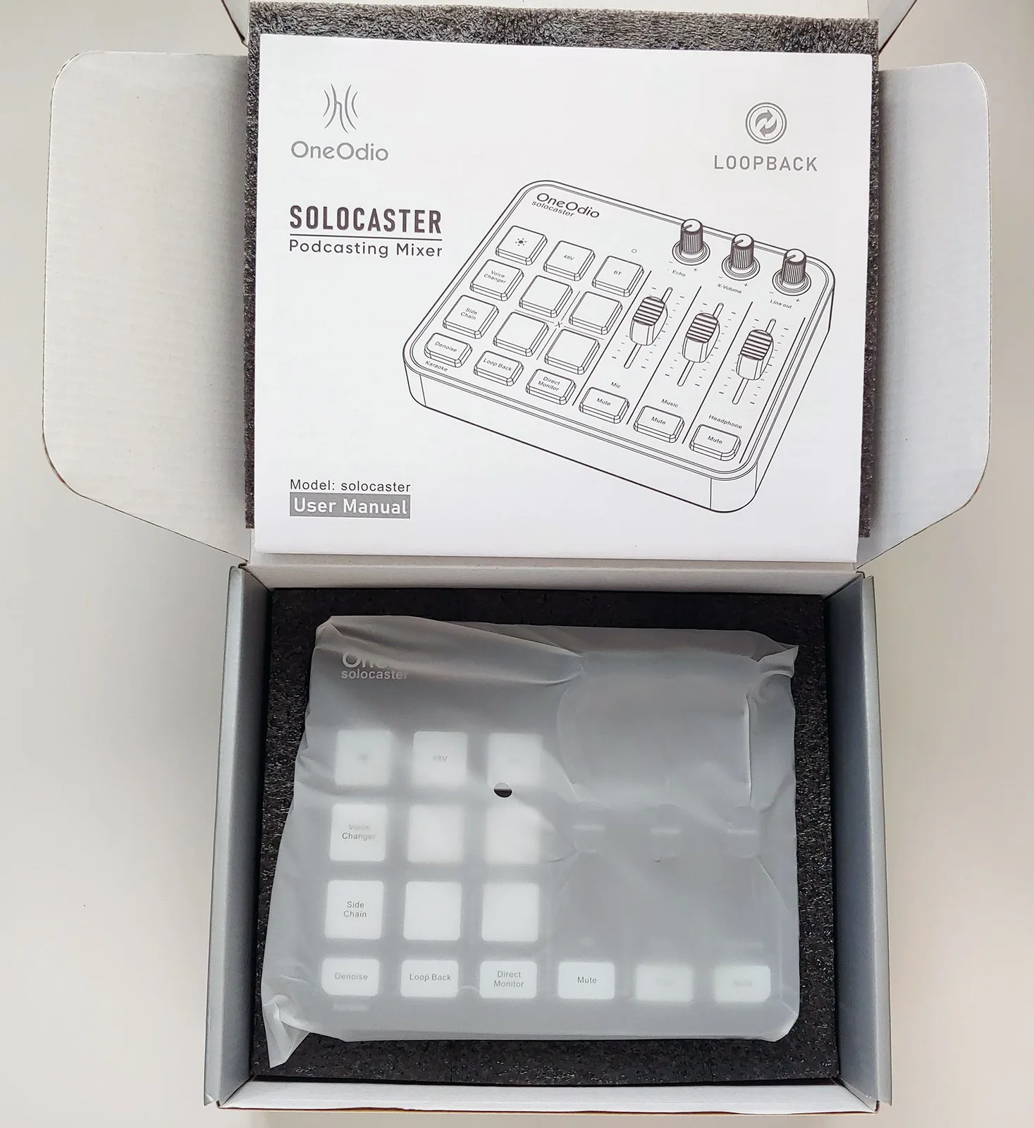 Le OneOdio Solocaster est apparu comme périphérique sonore dans Windows et a fourni un son mixte très utilisable avec un bruit de fond suffisamment faible (~-50 à -60 dB) pour être utilisé dans des applications de streaming telles qu'OBS, avec la latence attendue facilement corrigée. Associé à des micros bon marché d'une qualité audio décente et d'une réjection du son hors axe comme le Tascam, la sortie de la table de mixage a pu être utilisée dans des pièces calmes sans autre traitement du son.