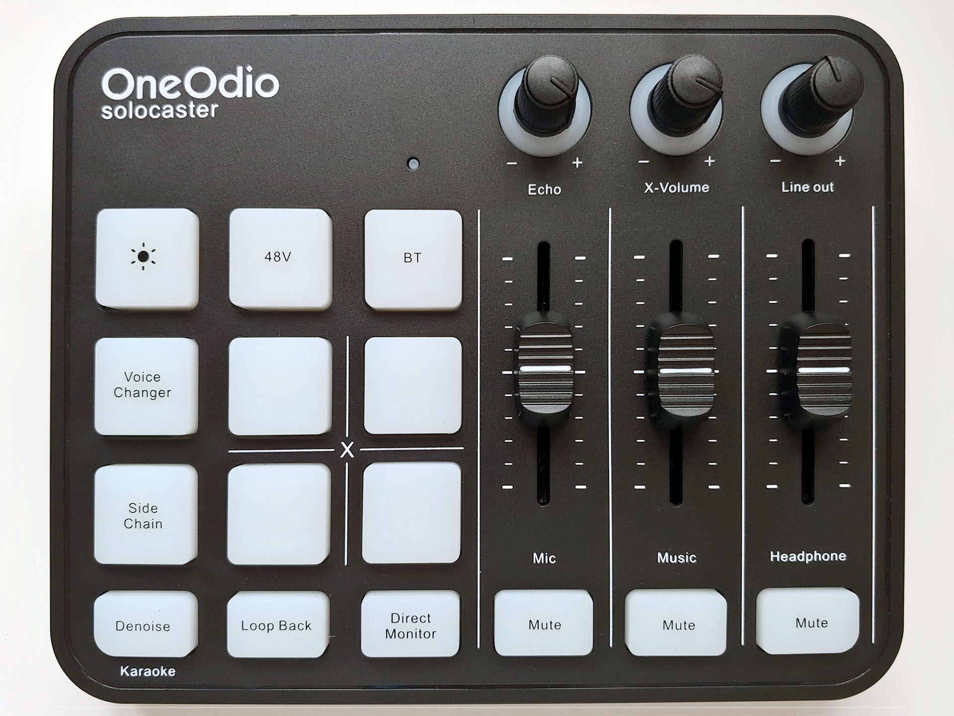 Le OneOdio Solocaster a une disposition simple qui reflète les tables de mixage professionnelles.