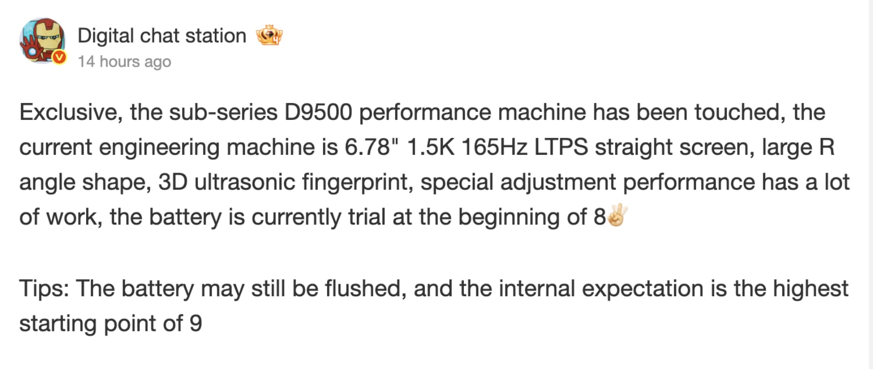 Comme d'habitude, l'auteur de la fuite n'a pas nommé l'appareil directement. Cependant, la réflexion actuelle laisse penser que Digital Chat Station fait allusion à la rumeur de l'Ace 6 Ultra plutôt qu'à une extension de la série Turbo naissante de OnePlus. Sans parler de nom, Digital Chat Station affirme que OnePlus développe un smartphone doté de la "variante performance" du processeur MediaTek Dimensity 9500 de MediaTek.