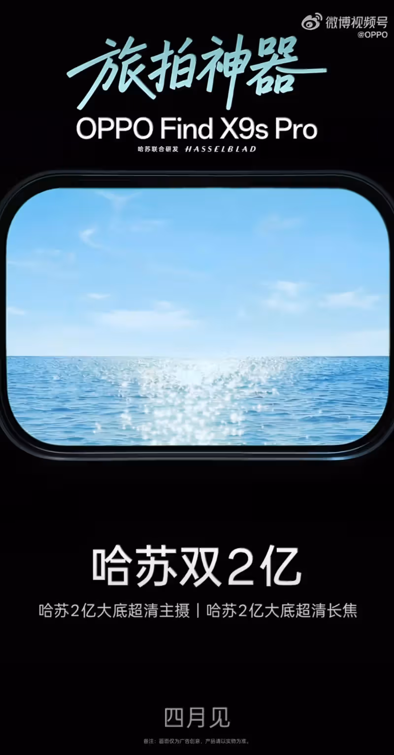 L'Oppo Find X9s Pro a été officiellement révélé comme étant doté d'un double capteur photo de 200 Mpx et d'un réglage des couleurs Hasselblad. Des fuites suggèrent que les caméras principales et le téléobjectif pourraient utiliser le capteur Isocell HP5 de 200 mégapixels et de 1/1,56 pouce. L'appareil photo arrière pourrait également inclure un objectif ultra-large de 50 mégapixels et un capteur multispectral.