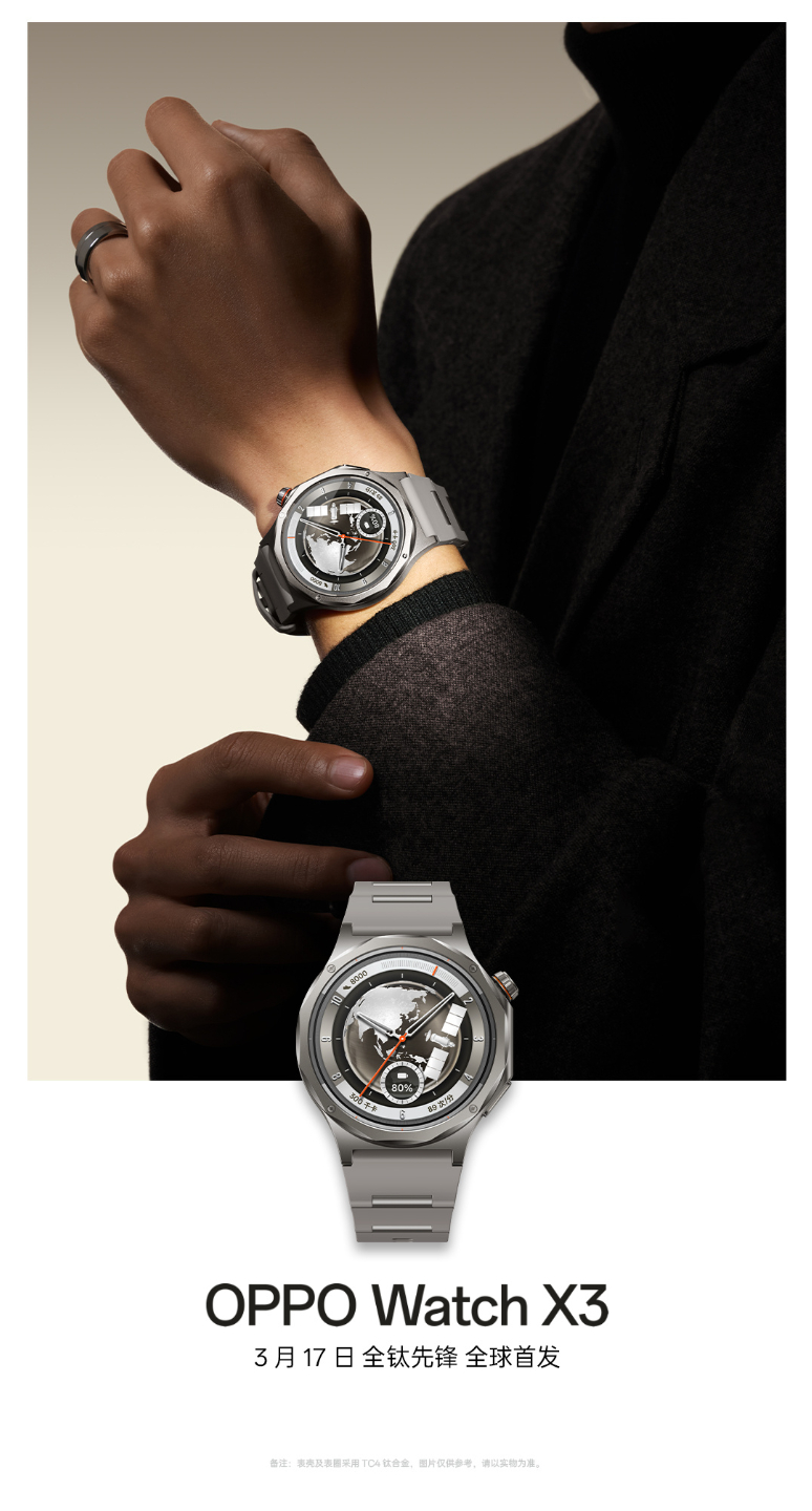 Oppo a partagé de nouvelles informations sur sa prochaine smartwatch haut de gamme. Pour rappel, la société a publié deux vidéos relatives à la Watch X3 à la fin de la semaine dernière. Aujourd'hui, Oppo a confirmé que la Watch X3 rejoindra le Find N6 lors d'un lancement simultané le 17 mars.