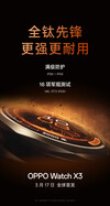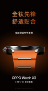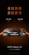 Pour l'instant, l'entreprise n'a pas mentionné la Watch X3 en dehors des médias sociaux chinois. Cependant, les teasers chinois de la société suggèrent que la Watch X3 sera présentée en avant-première mondiale le 17 mars. En outre, Oppo a révélé que sa nouvelle smartwatch est 16 % plus légère et 6,4 % plus fine que la Watch X2qui pèse respectivement 49,7 g et 11,8 mm.