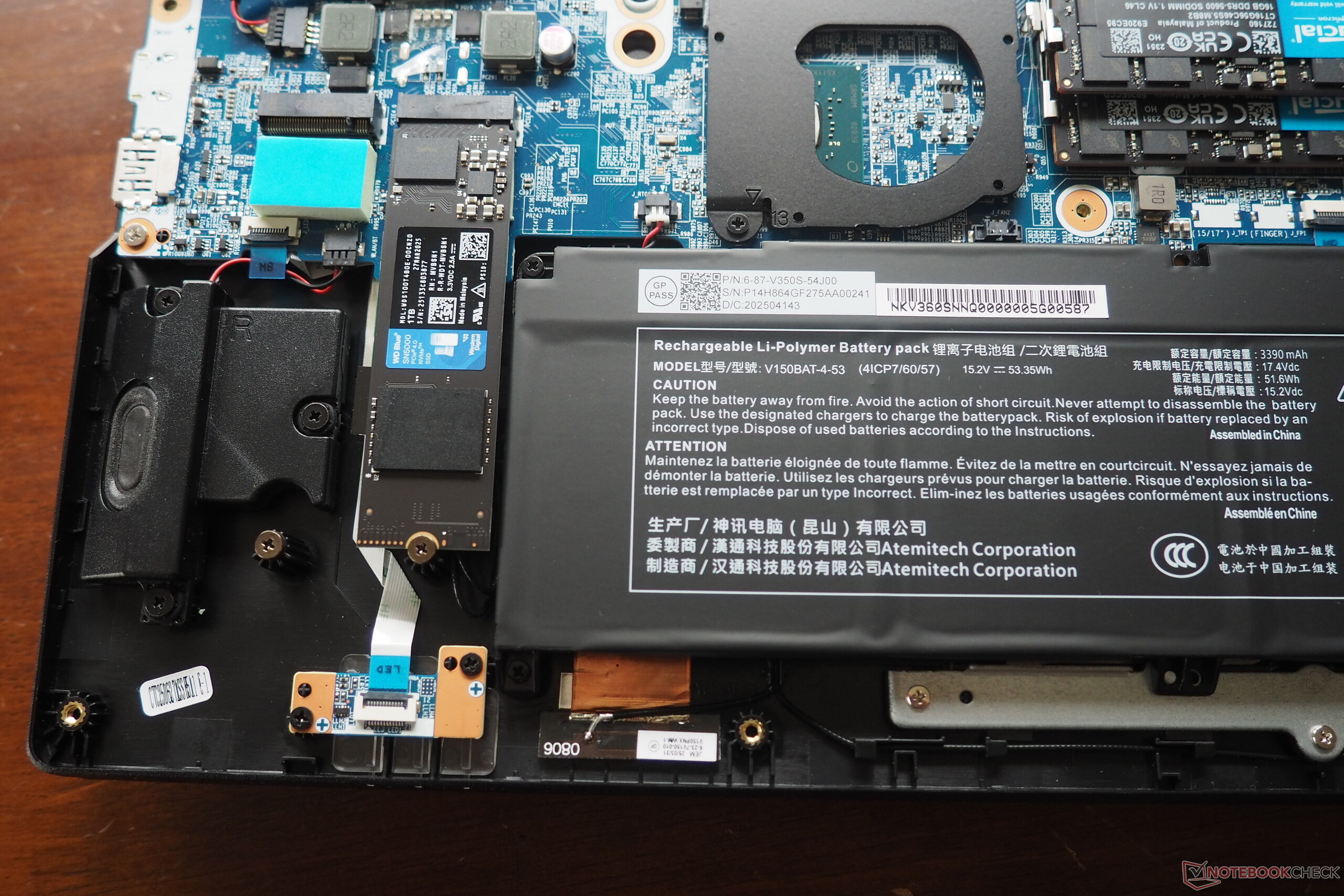 Lors de notre test Wi-Fi avec une luminosité de 150 cd/m², la batterie de 53 Wh a tenu un peu moins de 4,5 heures, ce qui est un résultat médiocre. À titre de comparaison, les concurrents dotés de batteries plus puissantes de 70 à 96 Wh affichent une autonomie d'environ 5 heures (HP Omen 16) à 11 heures (Acer Nitro V 16 AI).