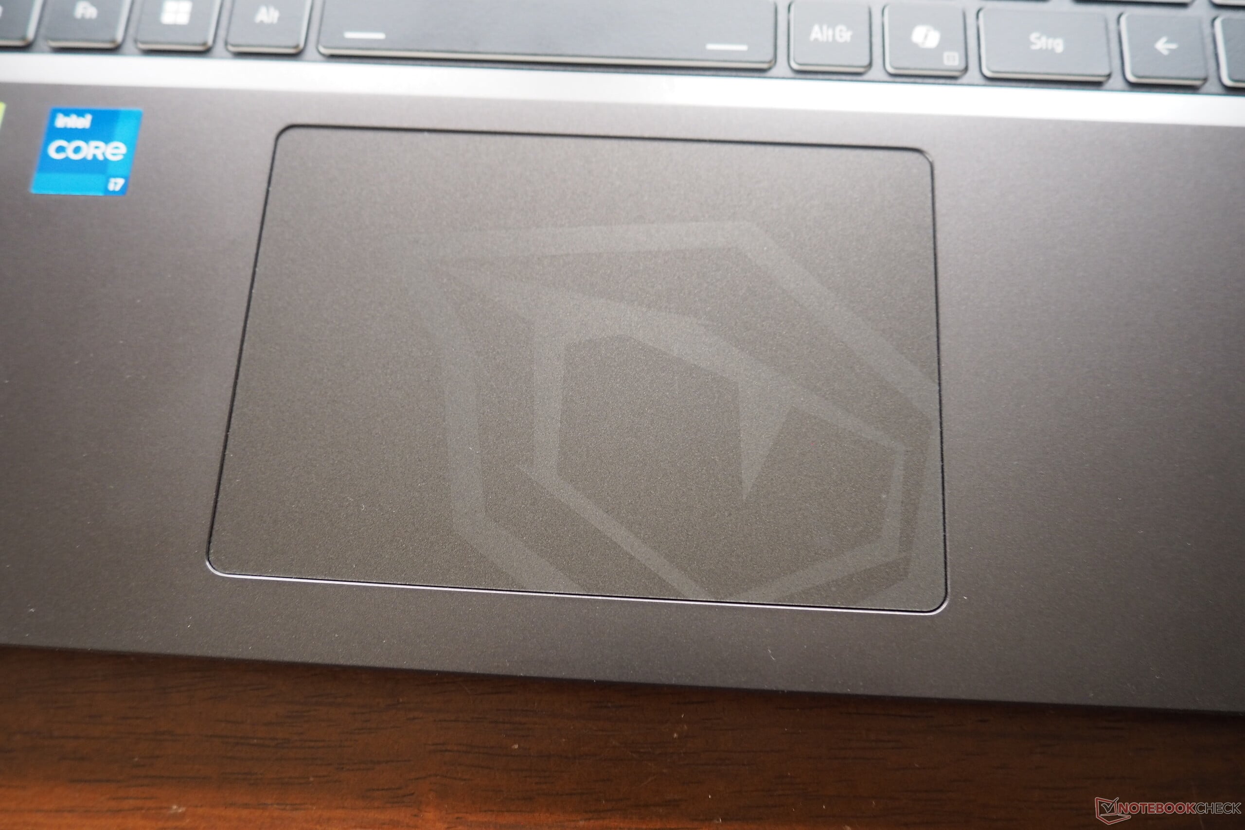Le pavé tactile peut encore être amélioré, car la reconnaissance des gestes n'est pas toujours fiable. Sinon, il offre une précision solide et une glisse fluide. La surface d'environ 12,1 x 8,3 cm est plus que suffisante pour un ordinateur portable de 16 pouces. Comme chez plusieurs concurrents, les mécanismes de clics sonnent un peu creux.