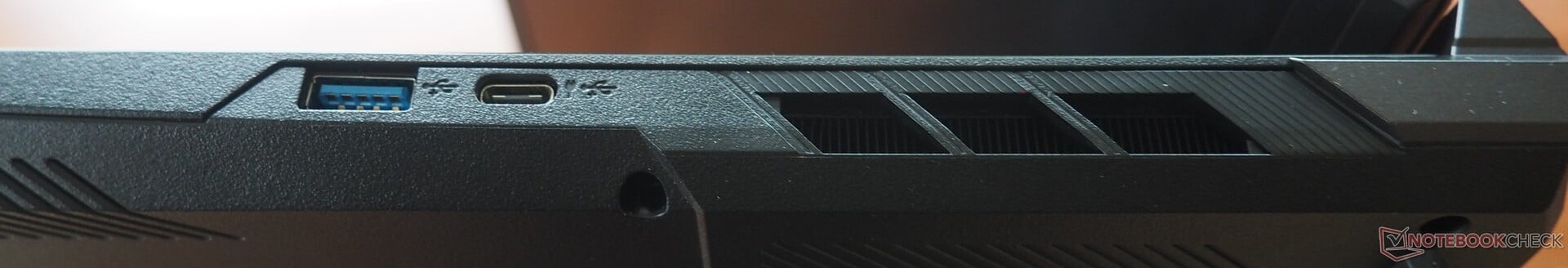 Les ports sont répartis sur presque tous les côtés du châssis. Bien qu'il soit dépourvu d'USB 4 ou de Thunderbolt, le système offre tout de même quatre ports USB (deux de type A et deux de type C). Les écrans externes sont plus faciles à connecter via HDMI. Un port LAN Gigabit, une prise casque et un emplacement pour verrou Kensington sont également inclus.