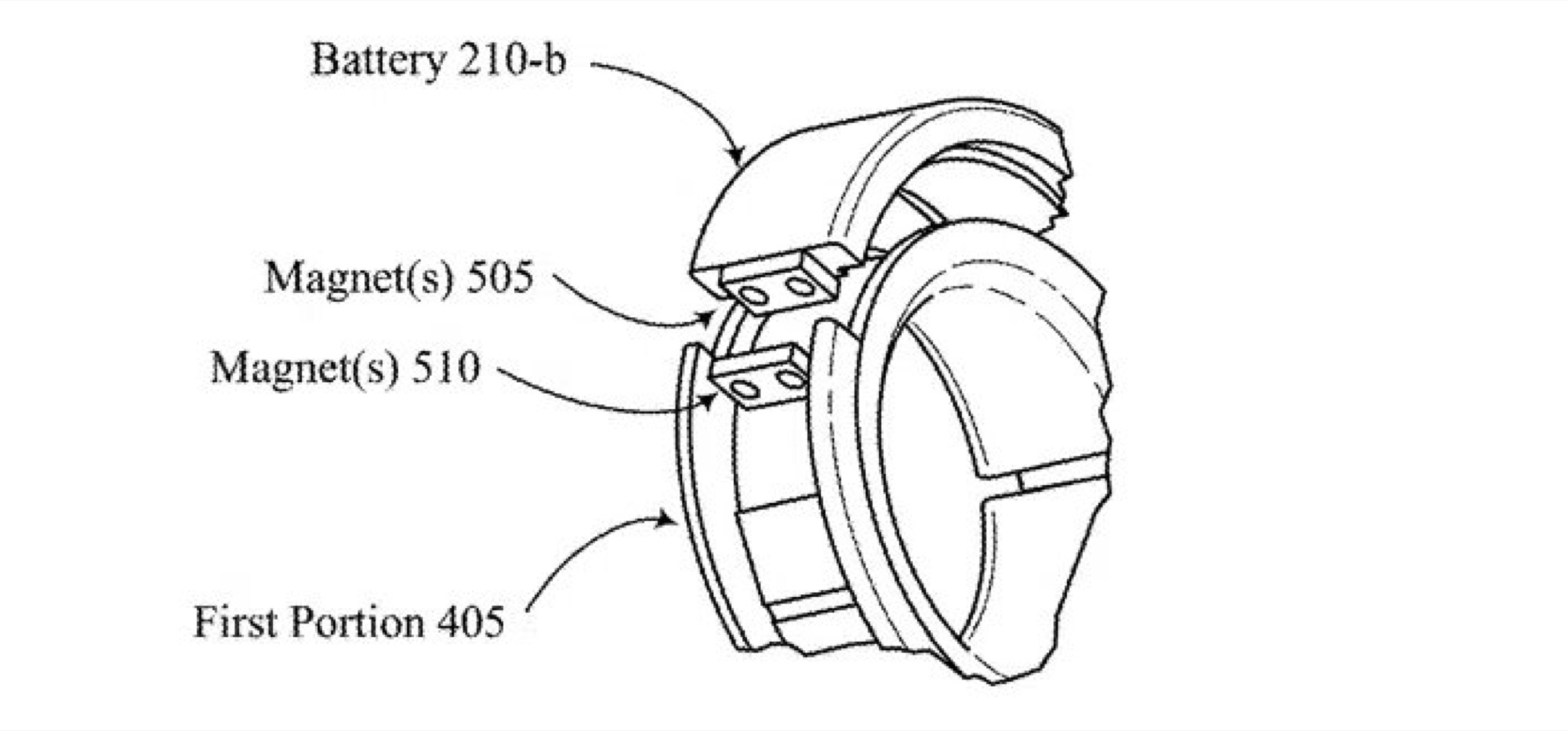 Comme le montrent les illustrations, la batterie est située dans une moitié de l'anneau. La partie extérieure, dans laquelle se trouve la batterie, peut être facilement retirée et remplacée si nécessaire. Le module de batterie et l'anneau contiennent tous deux de petits aimants qui maintiennent la batterie en place. Des contacts métalliques permettent de transmettre le courant de la pile à l'anneau, de sorte que les utilisateurs n'ont pas à manipuler de minuscules fiches pour remplacer la pile.
