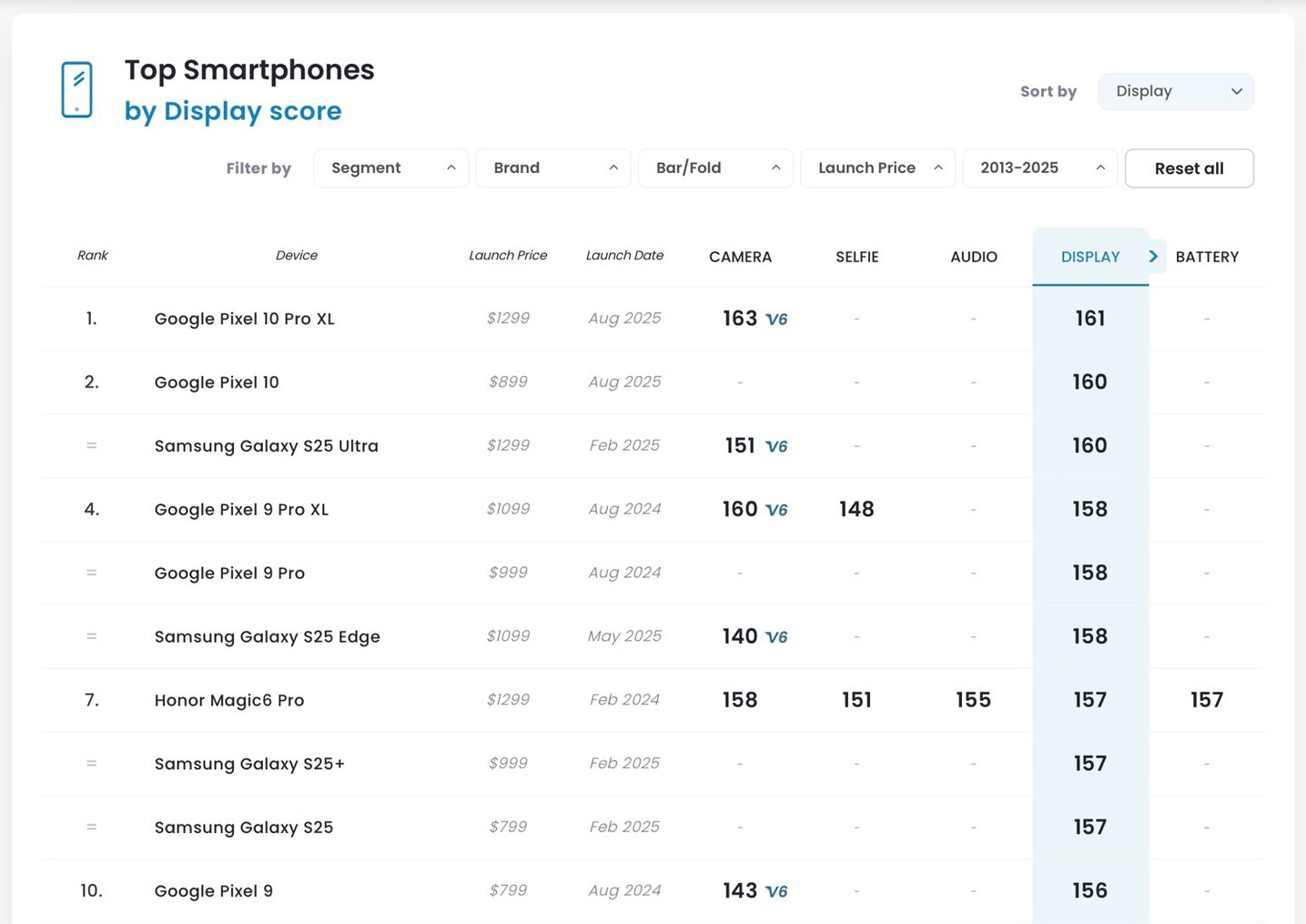 Notre Pixel 10 Pro XL est désormais en ligne après la sortie de l'appareil le mois dernier (actuellement 1 199 $ sur Amazon). Alors que notre examen couvre tous les aspects du dernier flagship de Google, DxOMark s'est concentré sur la qualité de l'écran du flagship, qu'il place au-dessus de tous les autres flagships modernes, y compris le Pixel 10, plus petit.