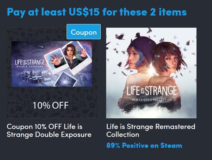 - coupon de réduction de 10 % pour Life is Strange - Double Exposure: Cette aventure narrative de 2024 développée par Deck Nine vous remet dans la peau de Max Caulfield, qui acquiert le pouvoir de passer d'une ligne temporelle à l'autre après avoir trouvé son amie Safi morte dans la neige. Vous enquêtez sur les deux lignes temporelles pour résoudre et empêcher le meurtre. Le jeu coûte 49,99 $ sur Amazon et compte environ 8 200 commentaires, dont 68 % sont positifs.