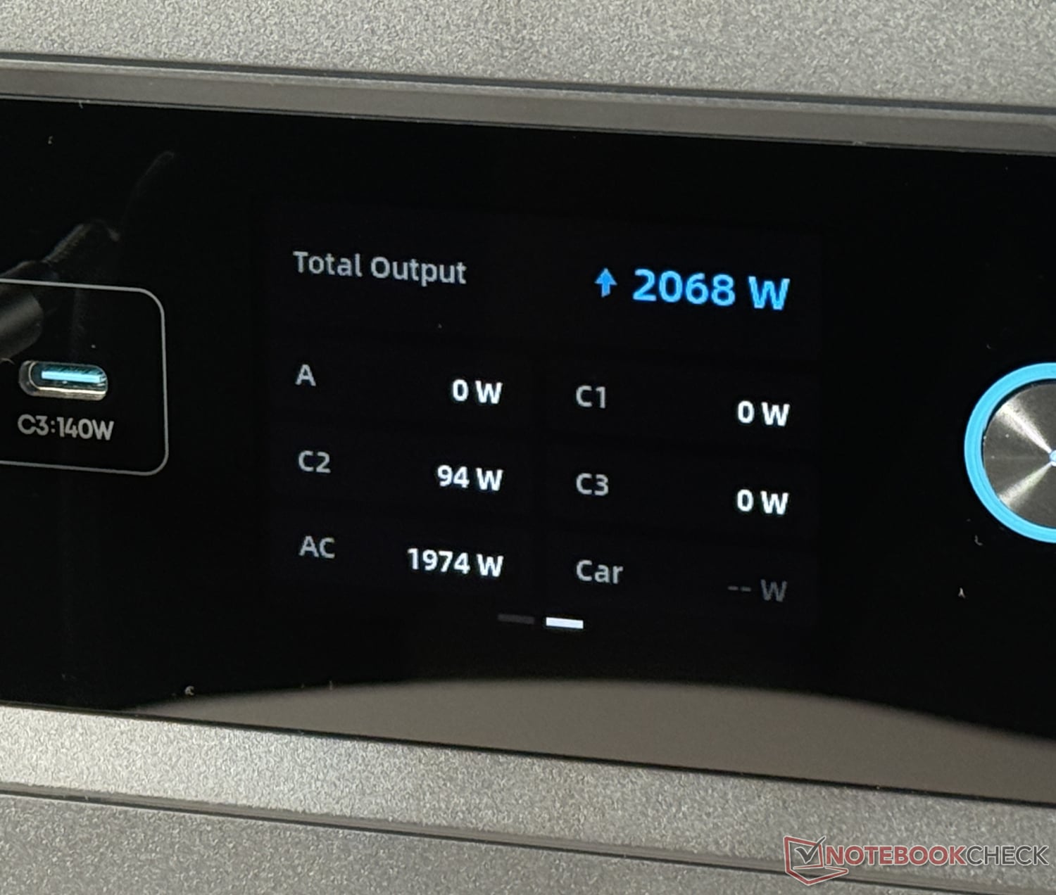La puissance de sortie continue a également légèrement augmenté et s'élève désormais à 2 000 W, soit 200 W de plus que la première génération. La puissance de crête disponible à court terme reste de 3 000 W. La charge solaire est également identique avec un maximum de 600 W (via XT60i).