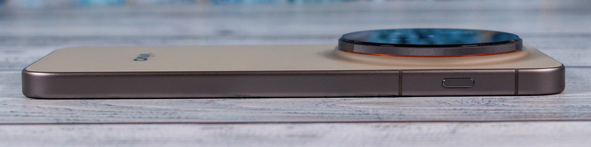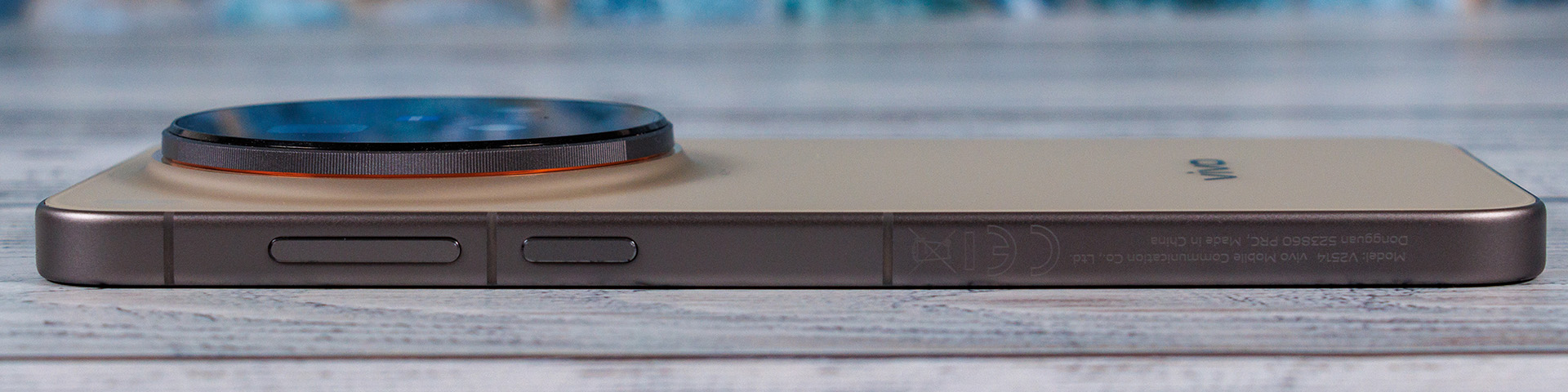 Le Vivo X300 Pro est disponible en Dune Brown et Phantom Black. Selon le fabricant, le smartphone a une hauteur de 7,99 mm, alors que nous avons mesuré 8,3 mm - ou 14,4 mm en incluant le module de l'appareil photo. Les caméras rendent le X300 Pro un peu lourd sur le dessus, mais nous ne trouvons pas cela gênant.