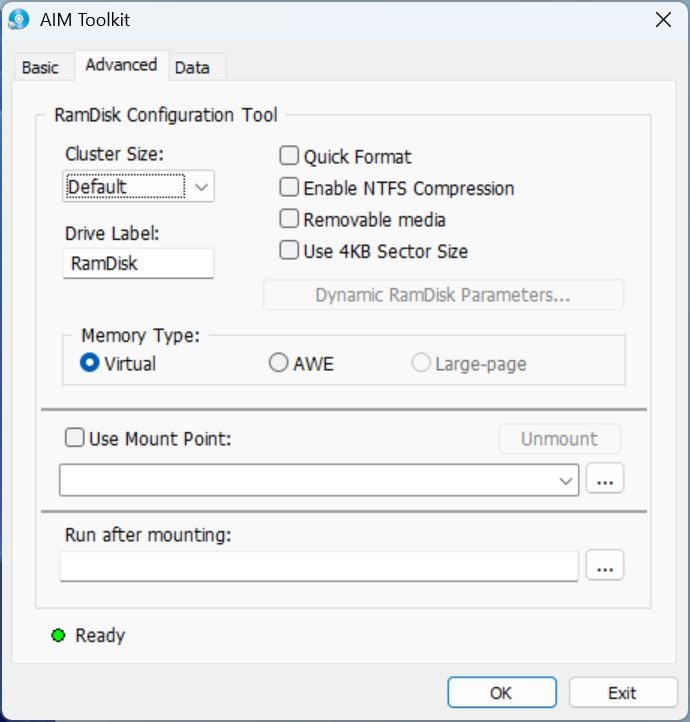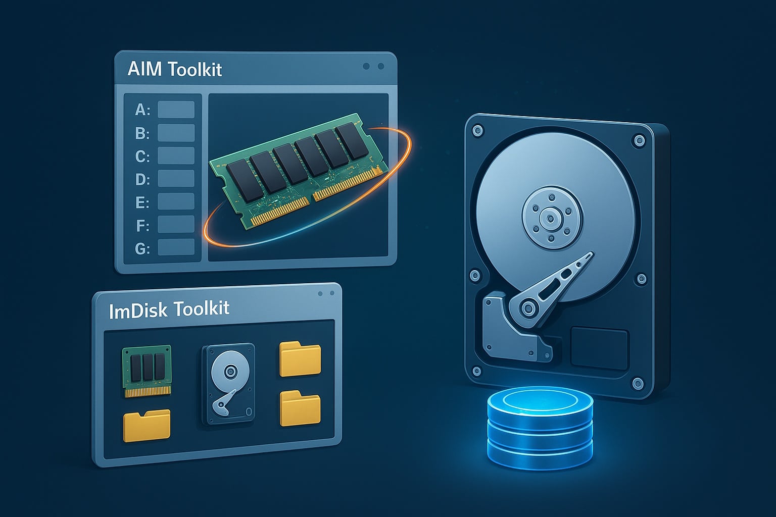 Pour un test de ce type, vous avez besoin d'un disque dur qui soit toujours plus rapide que le disque SSD que vous évaluez. Cela permet d'éliminer tout goulot d'étranglement du côté de la source ou de la destination. C'est là qu'intervient l'outil open-source AIM Toolkit. Une alternative populaire est ImDisk. Les deux outils offrent les mêmes fonctionnalités de base : ils peuvent créer des lecteurs virtuels dans la RAM et monter des fichiers images en tant que lecteurs virtuels.