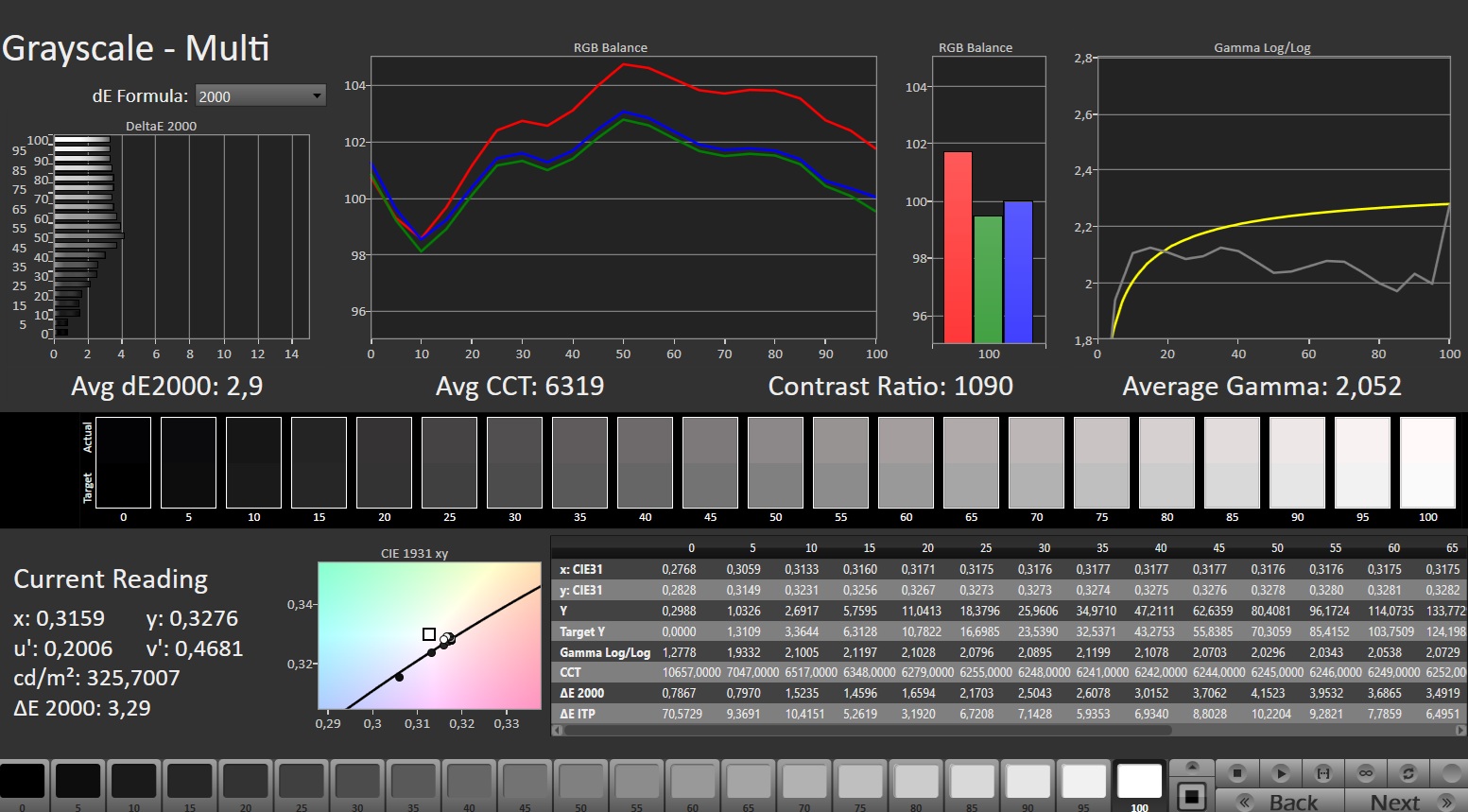 ΔE Greyscale Calman: 2.9 | ∀{0.09-98 Ø5}