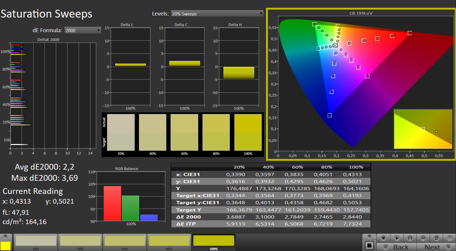 sRGB Coverage (%) | 97.5 | 58.1 -40% | 99.5 2% | 99.9 2% | 99.9 2% |