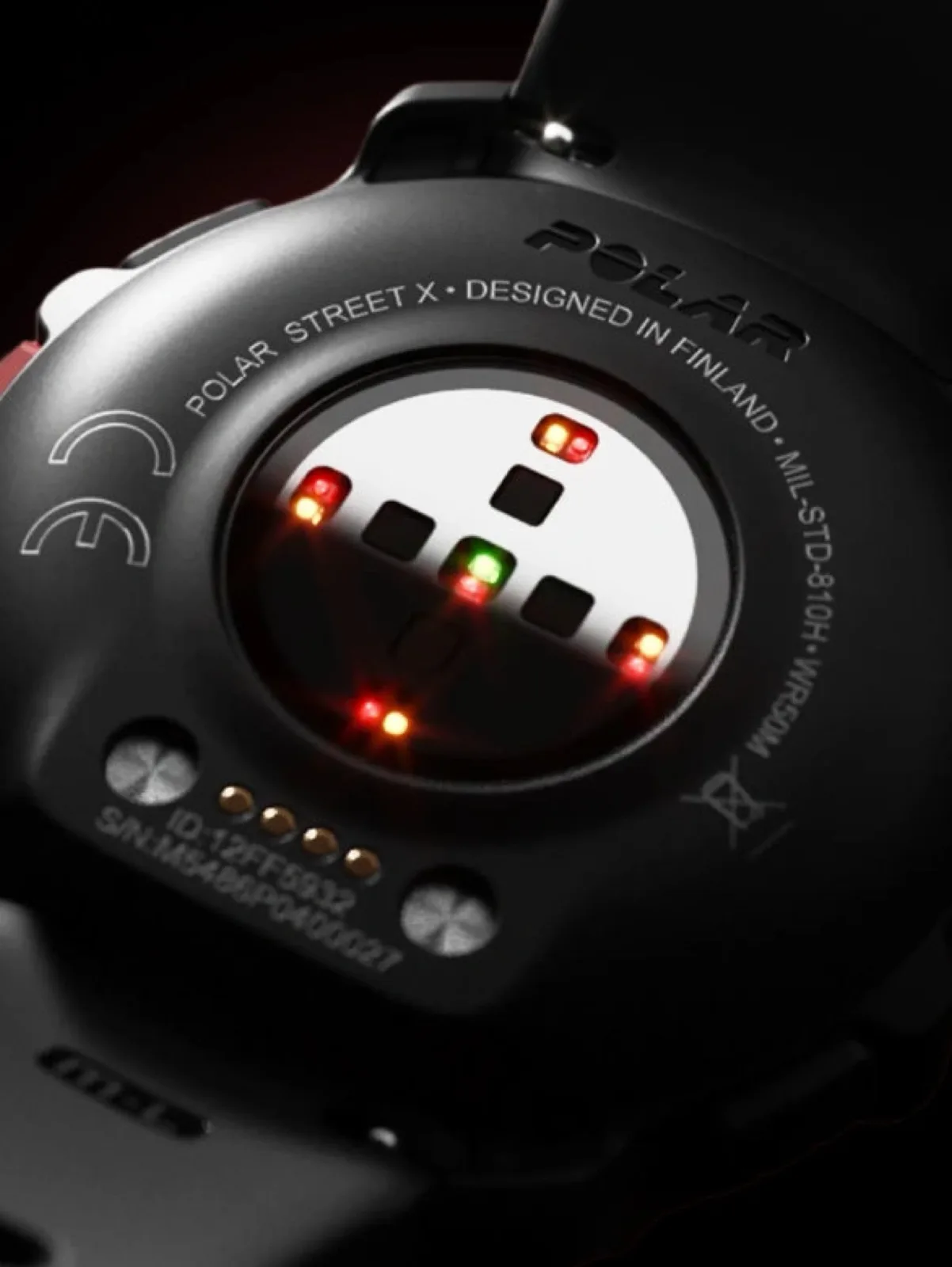 Le capteur optique Precision Prime Sensor mesure la fréquence cardiaque et la température de la peau, mais Polar ne dispose pas d'un ECG ou d'un capteur d'oxygène sanguin. La smartwatch prend en charge plus de 170 modes sportifs et le suivi du sommeil. Polar installe un module GPS pour enregistrer la distance parcourue en course à pied et à vélo sans smartphone ou pour naviguer à l'aide d'une simple application cartographique. La Polar Street X n'est pas équipée d'une puce NFC pour les paiements sans contact ni d'un système de stockage de musique intégré.