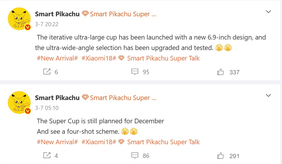 En Chine, le leaker Smart Pikachu a commenté la série Xiaomi 18 il y a quelques jours et a laissé entendre que nous pouvons nous attendre à un nouveau Xiaomi 18 Ultra en décembre, peut-être avec un quadruple appareil photo au lieu d'un triple. Il est également question d'un nouveau modèle de 6,9 pouces doté d'une nouvelle caméra ultra grand angle, bien que cette information puisse faire référence au Xiaomi 18 Pro Max