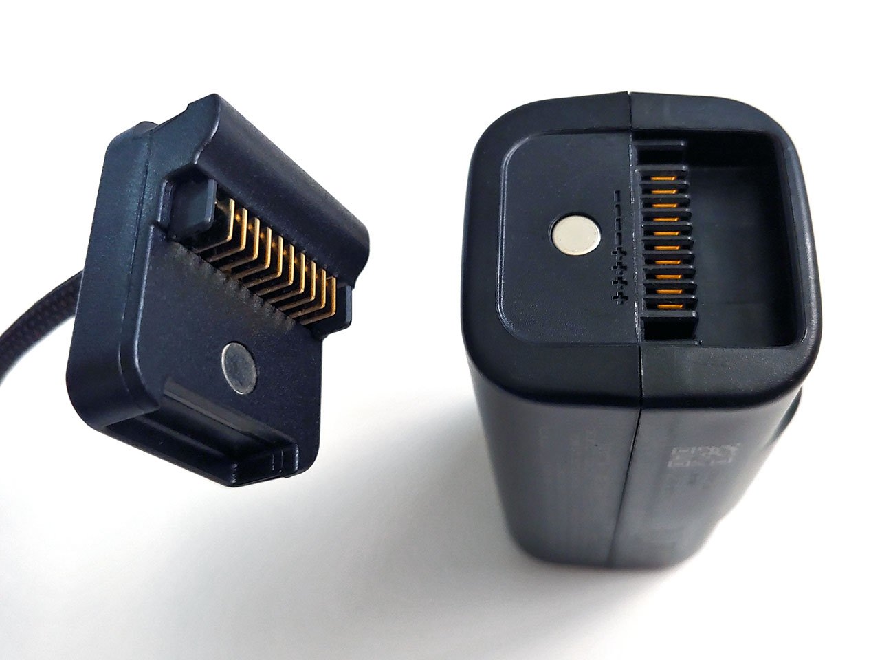 Le câble d'alimentation peut être rapidement déconnecté en cas d'urgence, et la batterie peut être rapidement détachée et retirée. Les gauchers trouveront la batterie montée à droite.