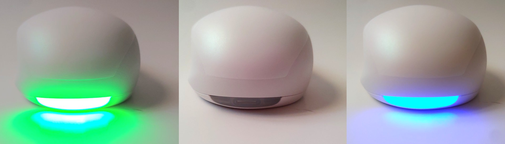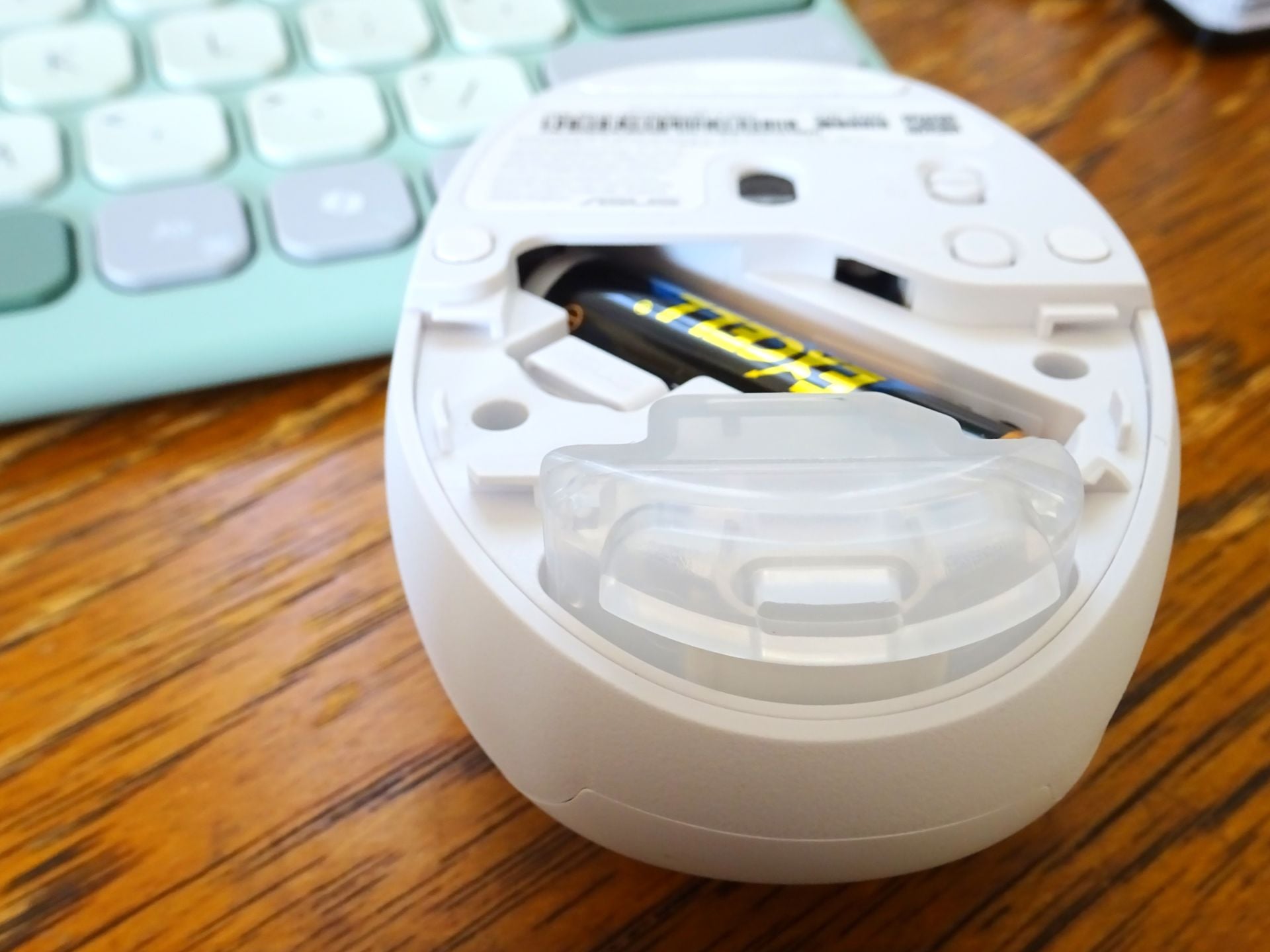 La souris est dotée d'un réservoir de parfum en plastique dans le compartiment des piles, avec un orifice d'aération à l'arrière. Le plastique semi-translucide sert également de guide lumineux pour l'indicateur entourant l'évent.