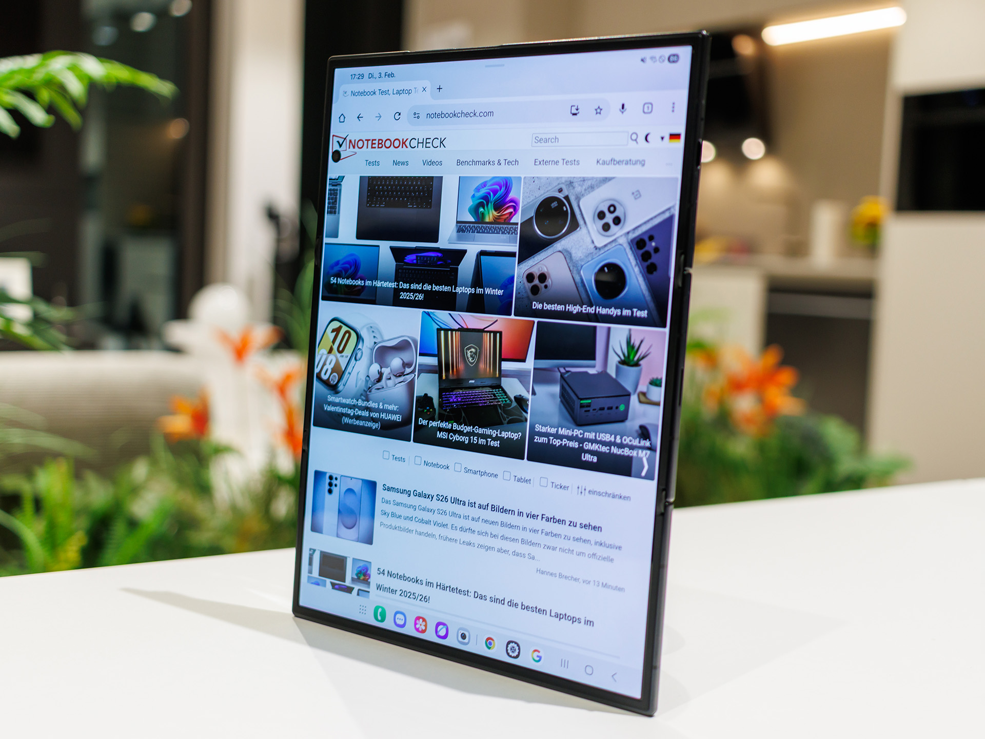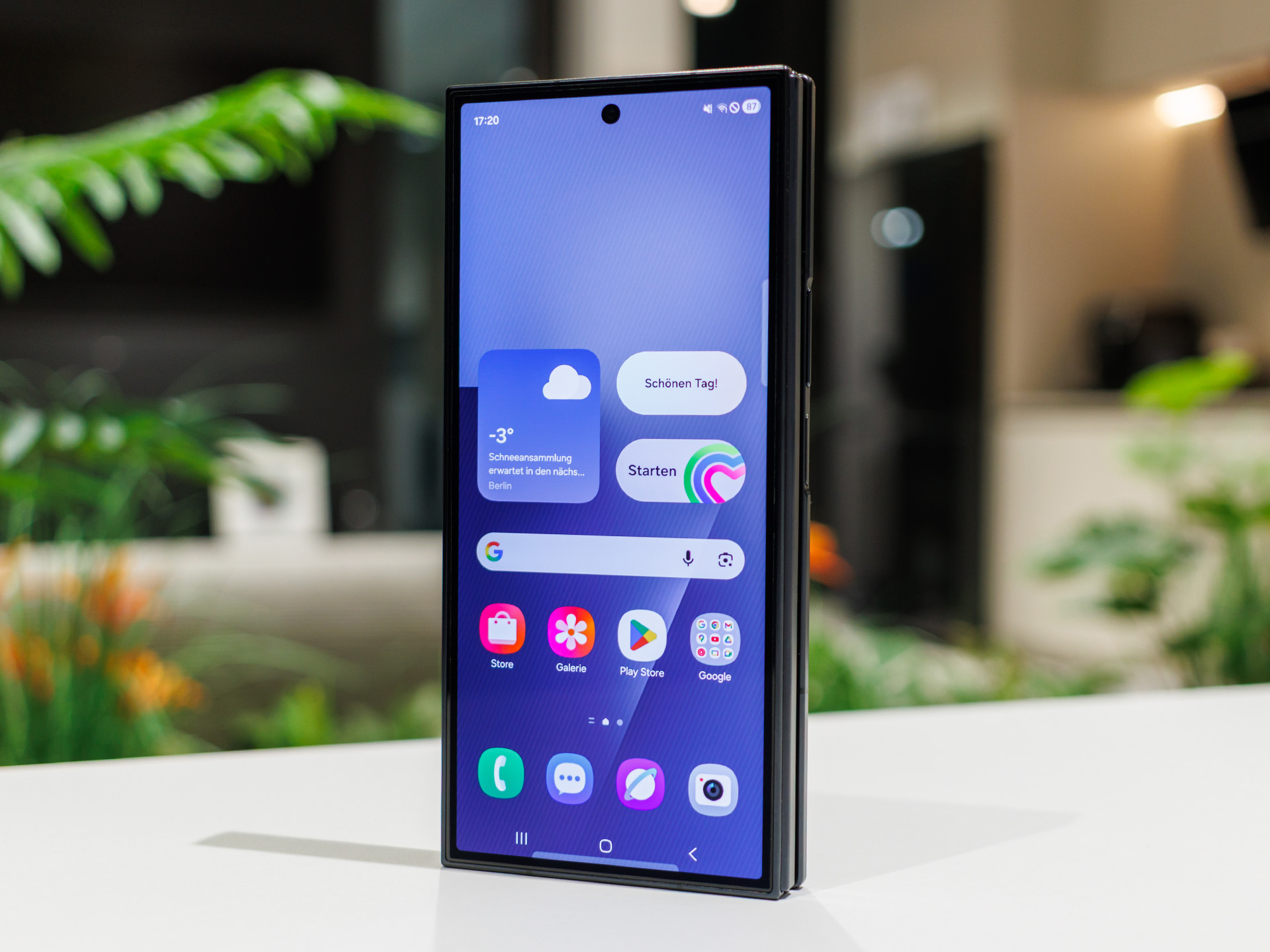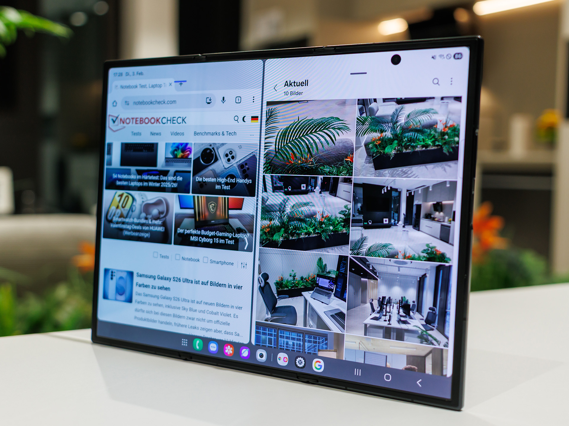 Au dos, Samsung a installé un système de triple caméra avec une caméra principale haute résolution, un ultra grand angle et un téléobjectif, qui, sur le papier, peut rivaliser avec la classe premium et bénéficie du facteur de forme Flex, par exemple pour la prise de vue mains libres ou les perspectives créatives lorsque l'appareil est à moitié ouvert et sert de trépied. En outre, il y a plusieurs caméras frontales pour les chats vidéo et les selfies, qui, en combinaison avec le grand écran interne, peuvent être particulièrement intéressantes pour les réunions productives ou la création de contenu. La conception avec deux charnières, des éléments en titane et du verre renforcé est destinée à améliorer la robustesse malgré la mécanique complexe, mais reste naturellement plus sensible qu'un monobloc classique.