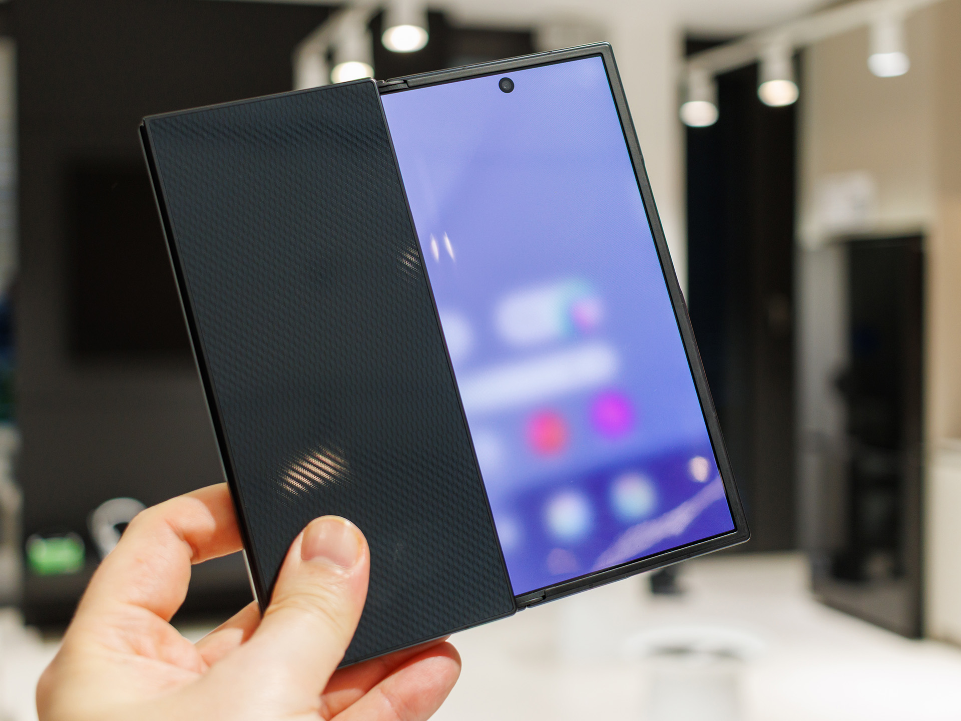 Lorsqu'il est plié, il tient raisonnablement bien dans la main comme un smartphone classique, mais lorsqu'il est déplié, il révèle un écran Dynamic AMOLED 2X de 10 pouces avec une haute résolution et un taux de rafraîchissement de 120 Hz, qui est idéal pour le multitâche, le travail créatif et la consommation de médias. L'écran interne est complété par un écran de couverture à part entière, qui permet d'utiliser un smartphone classique sans le plier dans le cadre d'une utilisation quotidienne et qui est conçu pour impressionner par sa luminosité élevée et son affichage rapide, même en extérieur.