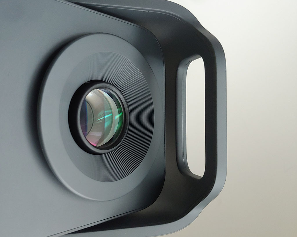 Il n'y a pas d'arêtes ou d'angles vifs, et l'échappement est protégé pour éviter tout contact accidentel avec le dissipateur thermique métallique chaud situé à l'intérieur. Au cours d'une nuit de 29,2 °C, la température de l'échappement mesurée directement derrière la grille en plusieurs points était comprise entre 31,5 °C et 45,2 °C. Le projecteur n'utilise pas de filtre à air pour empêcher la poussière de pénétrer, mais la société indique que le moteur optique certifié IP5X est étanche à l'intrusion de la poussière.