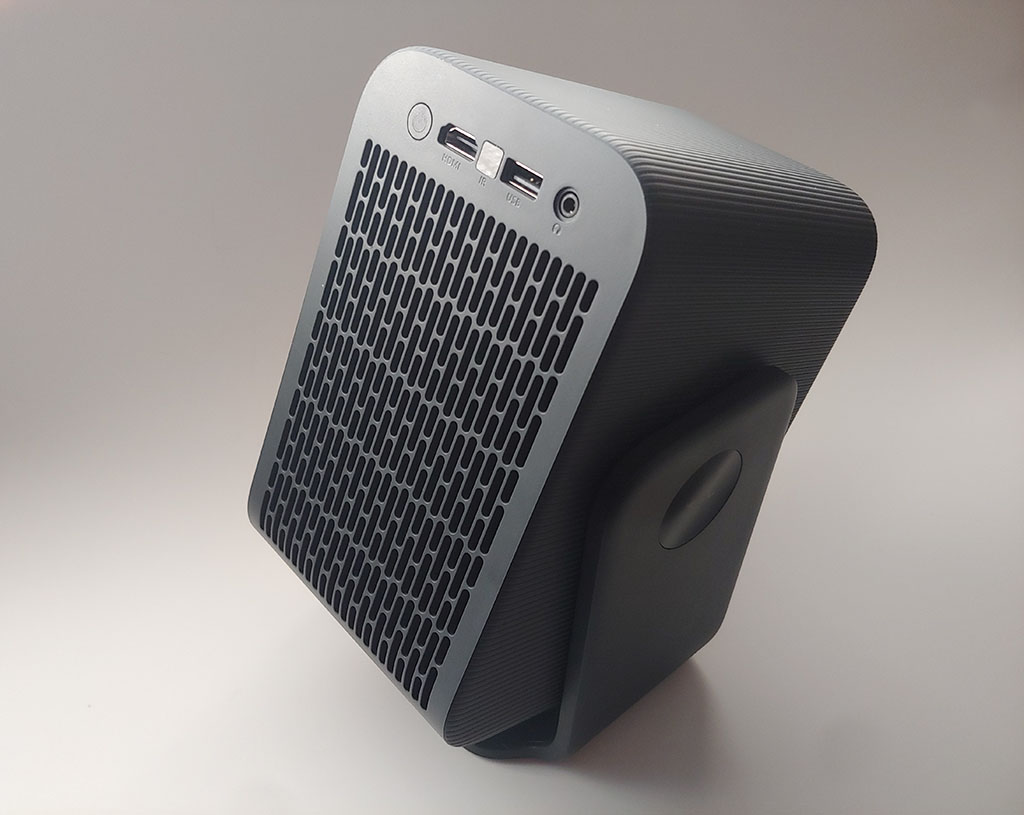 L'encombrement du projecteur, de la taille d'un CD, le rend idéal pour visionner les services de streaming les plus populaires et les chaînes de télévision gratuites dans les pièces où l'espace est compté. En contrepartie, le projecteur ne peut pas être utilisé dans des zones très lumineuses et nécessite le téléchargement manuel d'applications de miroir pour smartphone.