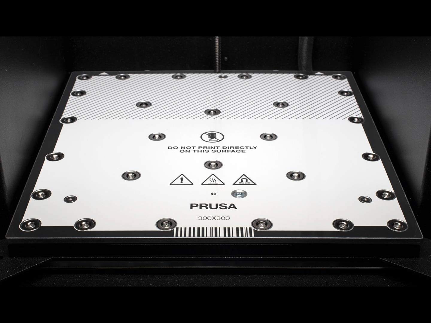Ce qui est fonctionnellement nouveau avec la Core One L, c'est le nouveau lit chauffant qui offre un chauffage uniforme avec une surface de lit en métal moulé et fraisé avec précision. Prusa affirme que la variation de température est inférieure à 2 degrés Celsius sur 99 % de la zone d'impression. La Core One L utilise également de manière créative le dessous du lit chauffant pour chauffer activement la chambre. Des ventilateurs situés sur la face inférieure créent un effet de convection forcée.