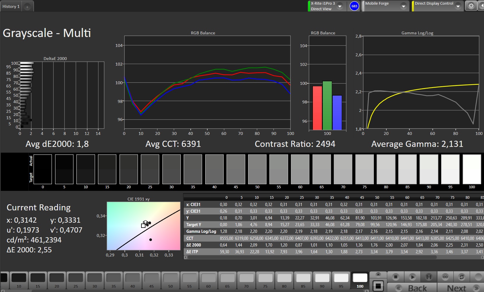 Le scintillement PWM à 180 Hz se produit à des niveaux de luminosité très faibles. Il existe une option appelée "Prévention du scintillement", mais elle améliore principalement le comportement à des niveaux de luminosité légèrement plus élevés. Par conséquent, les utilisateurs sensibles au PWM devraient essayer l'écran en personne avant de l'acheter.