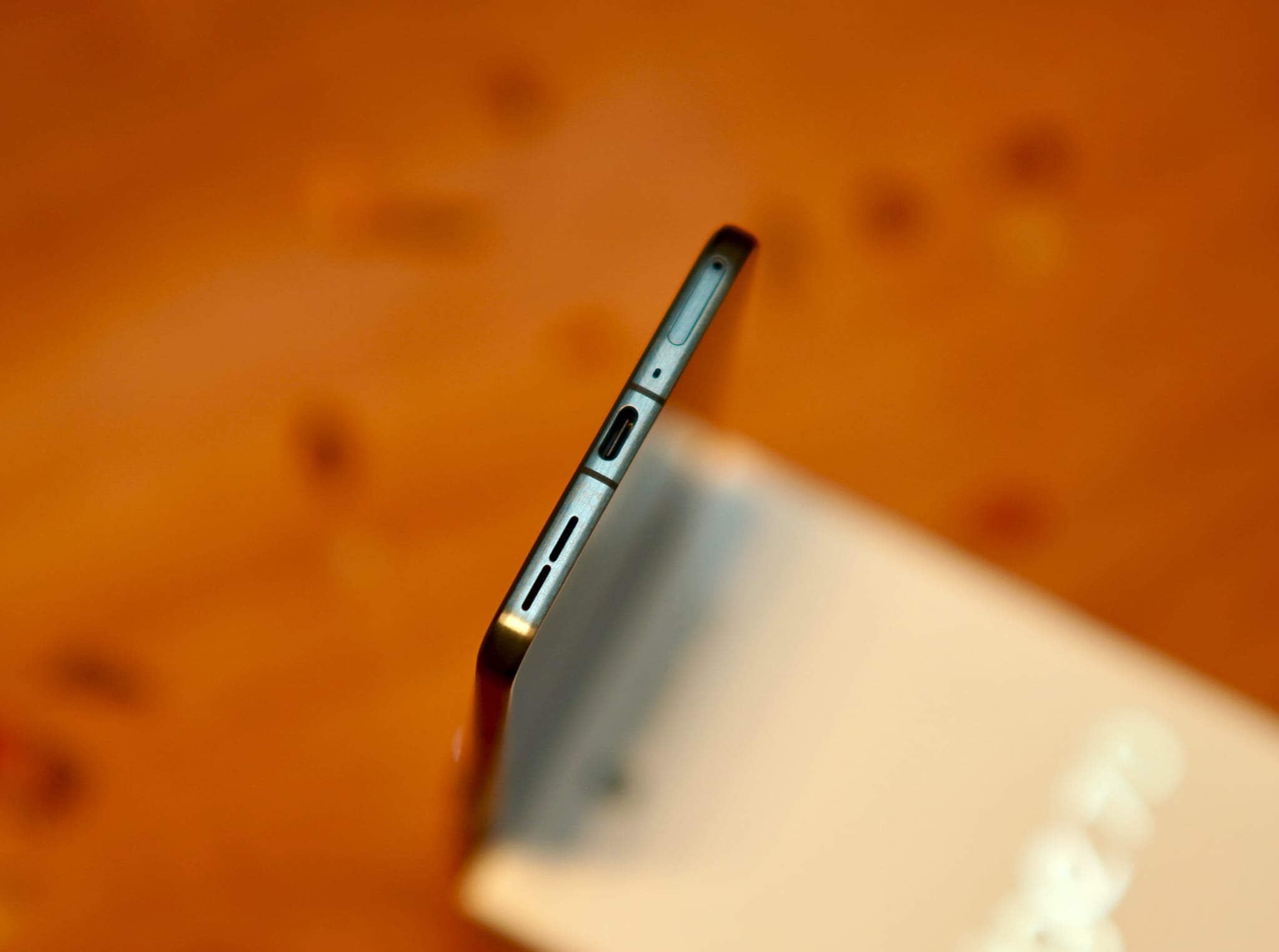Au premier coup d'œil, le châssis impressionne par son profil mince et son poids très faible de 159 grammes. Grâce au cadre en aluminium, le smartphone semble toujours solide, ne présente aucune flexion et ne grince pas.