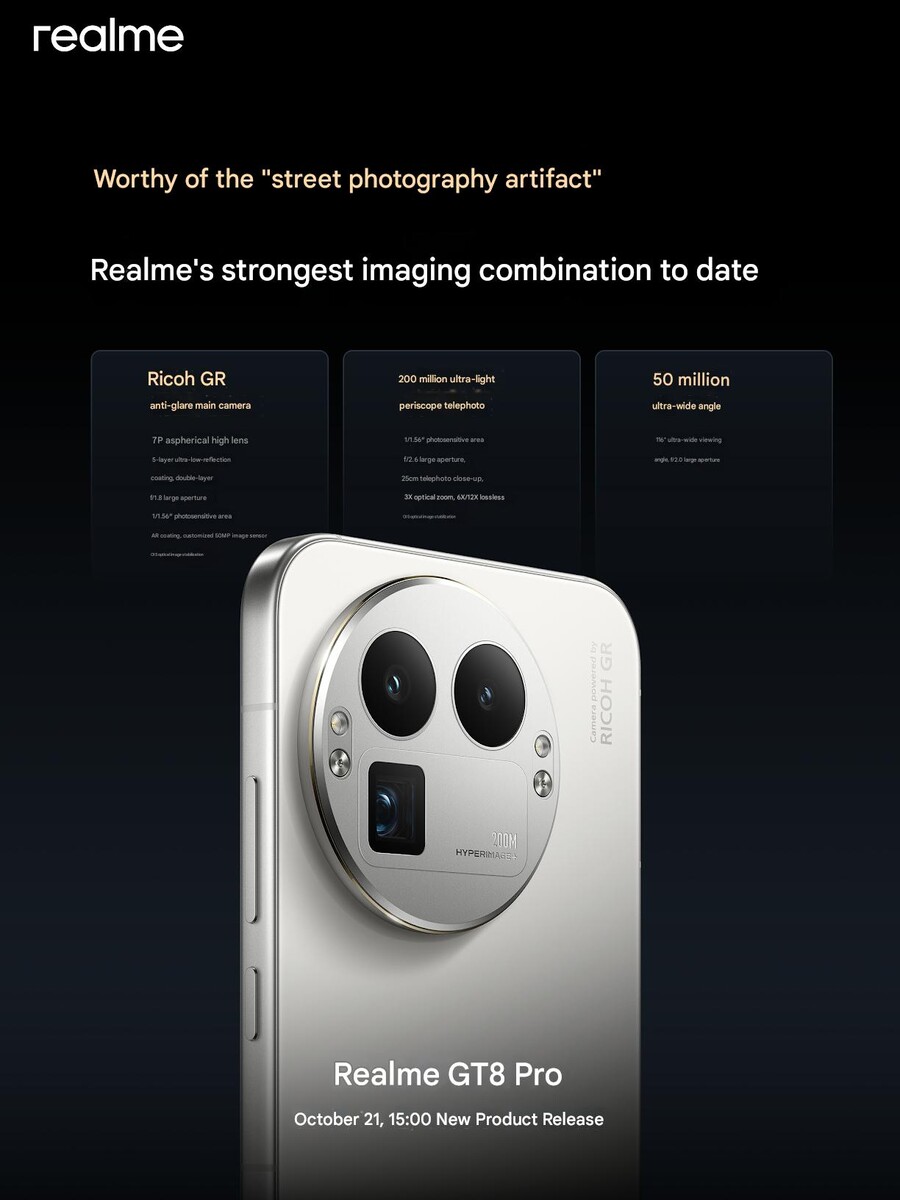 Le vice-président de Realme a été très actif sur Weibo ces derniers jours et a partagé de nombreuses spécifications techniques du Realme GT 8 Pro avant que le flagship à caméra Ricoh GR ne soit officiellement dévoilé le 21 octobre. Certains détails et le SoC Snapdragon 8 Elite Gen 5 ont déjà été confirmés, et il y a d'autres informations en termes de spécifications de la batterie, du châssis, des caméras et de certains autres aspects du prochain smartphone Realme.