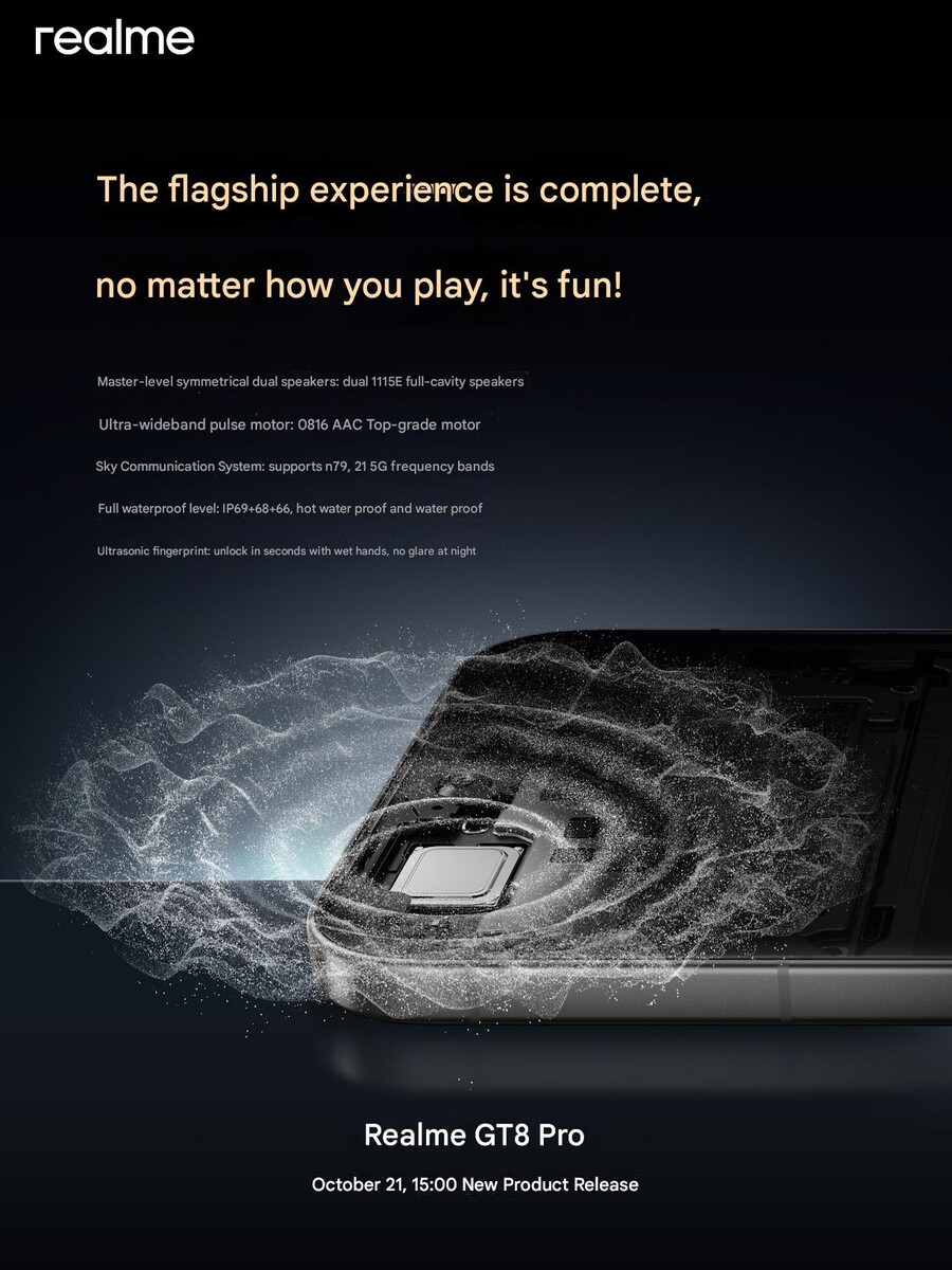 Dans des affiches teaser supplémentaires, Realme annonce également un nouveau système sonore, une meilleure connectivité 5G avec la prise en charge de 21 bandes 5G et un capteur d'empreintes digitales à ultrasons intégré à l'écran. Enfin, la société promet également une mise à jour pour la nouvelle interface utilisateur Android, Realme UI 7.0. Quatre ans de mises à jour Android et cinq ans de mises à jour de sécurité peuvent ne pas sembler aussi impressionnants que les sept ans de Samsung, mais c'est tout à fait respectable pour le marché chinois, car ces fabricants ont été plutôt hésitants avec les garanties de mise à jour logicielle.