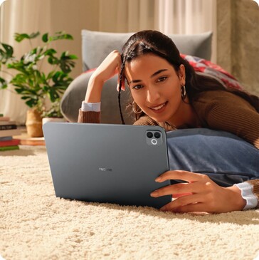 La tablette de milieu de gamme est dotée d'un boîtier métallique de 6,6 millimètres d'épaisseur et de 578 grammes qui abrite une batterie comparativement importante de 12 200 mAh qui peut être chargée via USB-C à une puissance maximale de 45 watts, la tablette fonctionnant également comme une banque d'énergie et chargeant des smartphones ou des accessoires à une puissance de 6,5 watts. Realme annonce une autonomie de 16,7 heures en streaming vidéo. Associée à des haut-parleurs quadruples, la tablette est censée être idéale pour les applications multimédias