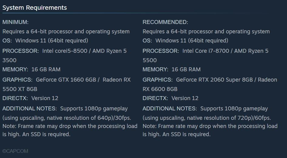 Si vous êtes sur un PC/portable de jeu, la configuration recommandée pour Resident Evil Requiem est la suivante :