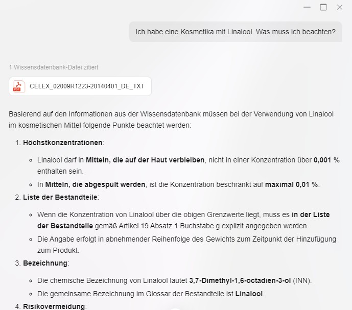 Dans notre scénario de test, le NAS n'était pas entièrement convaincant. En utilisant Qwen3 localement, il n'a pas trouvé toutes les informations. Le système a également tendance à halluciner. C'est là que les choses deviennent délicates : avec une recherche dans l'explorateur de fichiers de Windows, ou même avec la recherche universelle du NAS, nous aurions été plus rapides et aurions probablement obtenu de meilleurs résultats avec les PDF indexés, mais nous n'aurions pas été en mesure de trouver des informations qui n'étaient qu'indirectes. Lorsqu'une source unique définie par l'utilisateur est utilisée, en l'occurrence un règlement de l'UE, les résultats tendent à être meilleurs. Après analyse, un tel document unique peut également être utilisé pour répondre à des questions plus complexes. Même dans ce cas, le temps nécessaire pour traiter de telles requêtes peut être considérable. Perplexity Pro a mis moins de 10 secondes pour répondre à une question réglementaire spécifique basée sur ce règlement, alors que l'utilisation locale prenait généralement plusieurs minutes. La génération locale d'une recette de tarte aux cerises sans gluten a pris 2 minutes et 30 secondes. En comparaison, le modèle GPT-4.1 mini, qui peut être utilisé gratuitement sur le NAS Ugreen, a pris moins de 8 secondes. Un autre inconvénient majeur est que le chat LLM ne peut pas être utilisé en arrière-plan. Une seule instance peut être utilisée, il n'est donc pas possible de soumettre plusieurs demandes et de les faire traiter l'une après l'autre. Dans le travail quotidien, cela peut être un vrai problème.