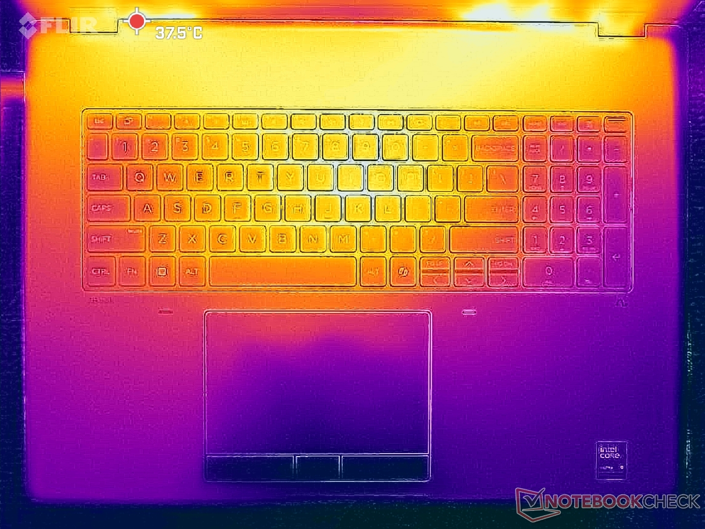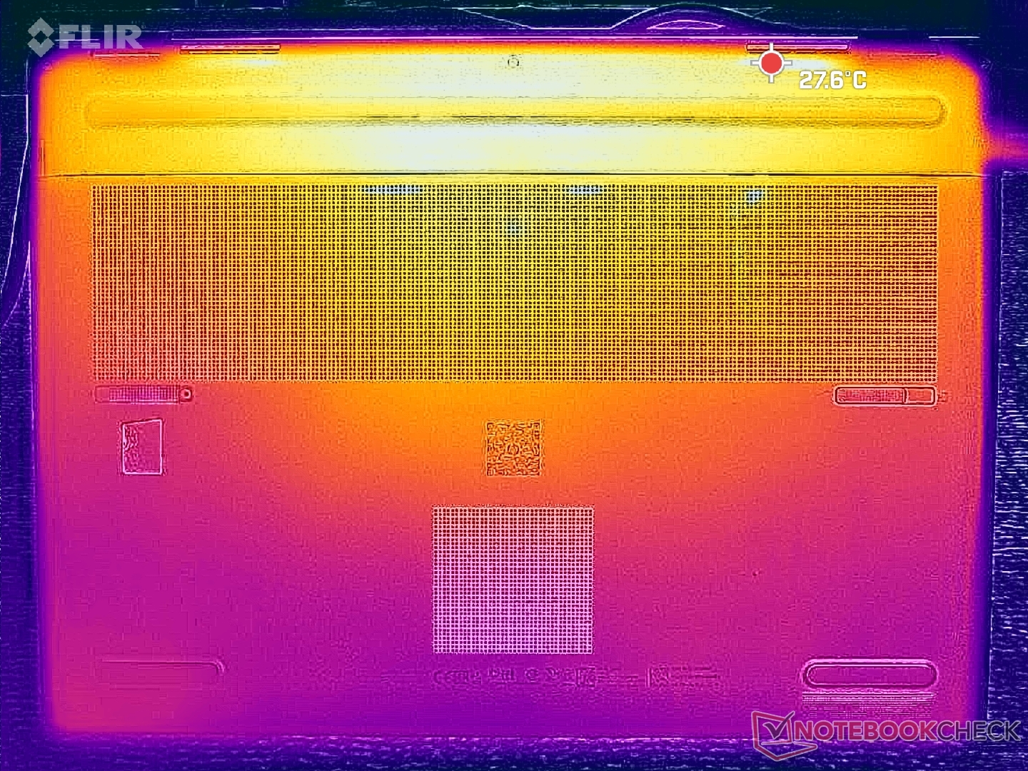 Les températures de surface restent raisonnablement fraîches, même en cas d'utilisation intensive. Les points chauds sur le clavier et le capot inférieur atteignent respectivement 40 et 36 °C, contre près de 50 °C sur le clavier de l'ordinateur Schenker Key 18 Pro.