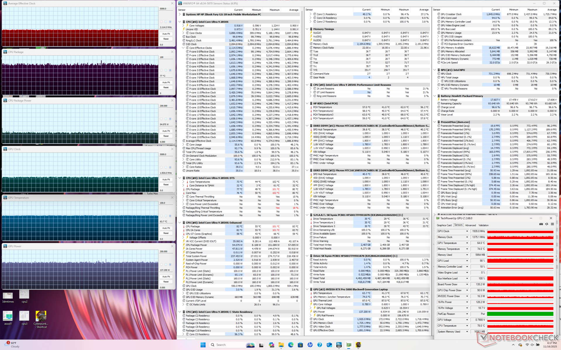 Malheureusement, plusieurs inconvénients empêchent le HP d'être la station de travail mobile de 18 pouces par excellence. Le plus important est peut-être que son processeur et son GPU fonctionnent légèrement, mais toujours plus lentement que ceux du Dell, alors qu'ils sont tous deux configurés avec des processeurs identiques. Le Dell Pro Max 18 Plus fonctionne plus chaudement tout en visant un TGP plus élevé de 175 W pour plus de performance. L'autonomie de la batterie et le bruit du ventilateur du HP ne sont pas nécessairement plus longs ou plus silencieux, respectivement, malgré les différences de performances entre les deux modèles. La machine Dell est également plus optimisée pour les charges de travail d'IA avec sa RAM CAMM2 de plus grande capacité et son DGFF amovible qui peut être remplacé par un NPU d'inférence Qualcomm discret. Les chasseurs de performances pourraient donc trouver plus de valeur dans la machine Dell.