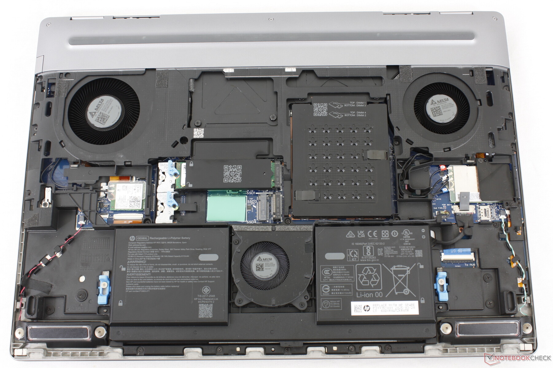 Le châssis en alliage d'aluminium n'est ni plus faible ni plus solide que celui du Dell Pro Max 18 Plus, mais il est légèrement plus fin et plus léger que celui du Dell, tout en étant plus long et plus large. Un avantage notable pour le HP, cependant, est que son écran peut s'ouvrir à 180 degrés pour un peu plus de polyvalence.