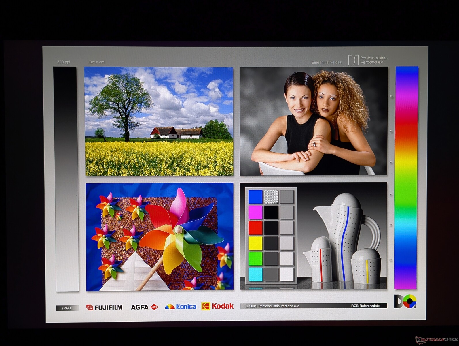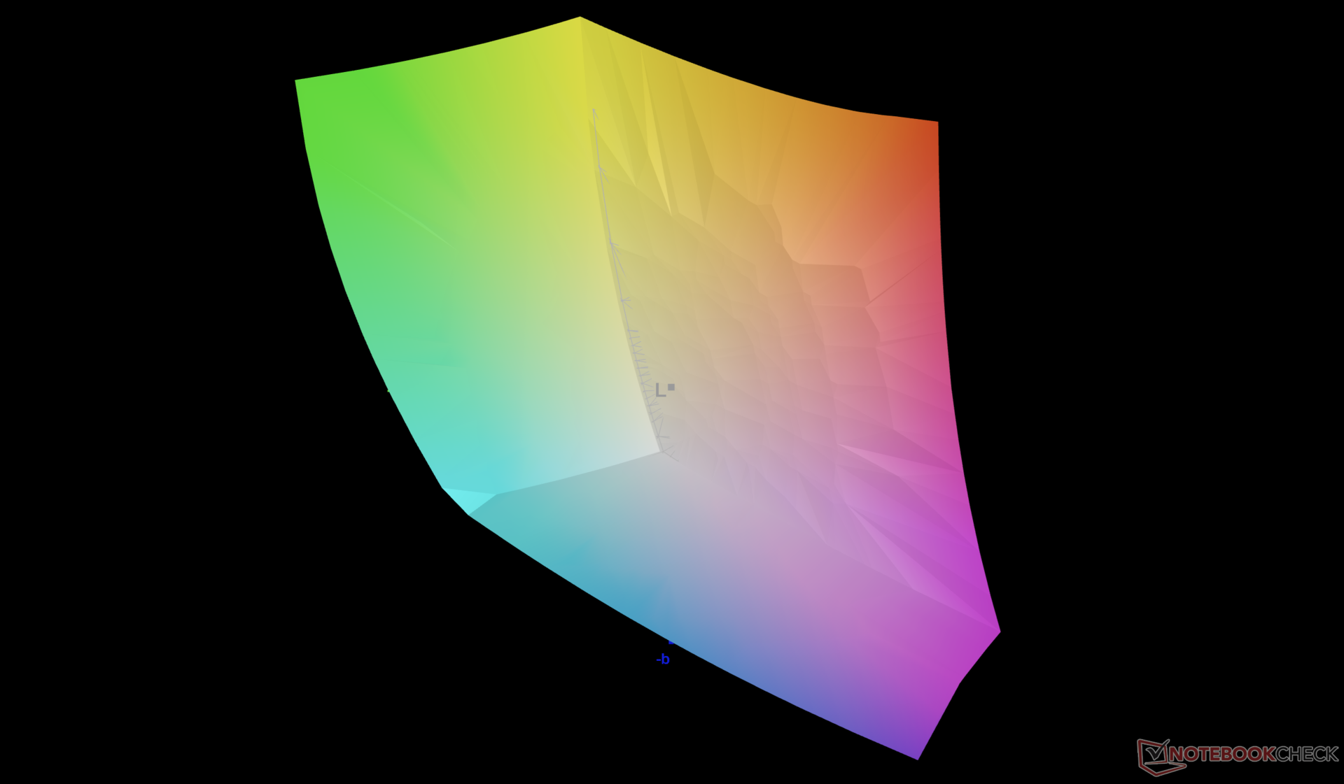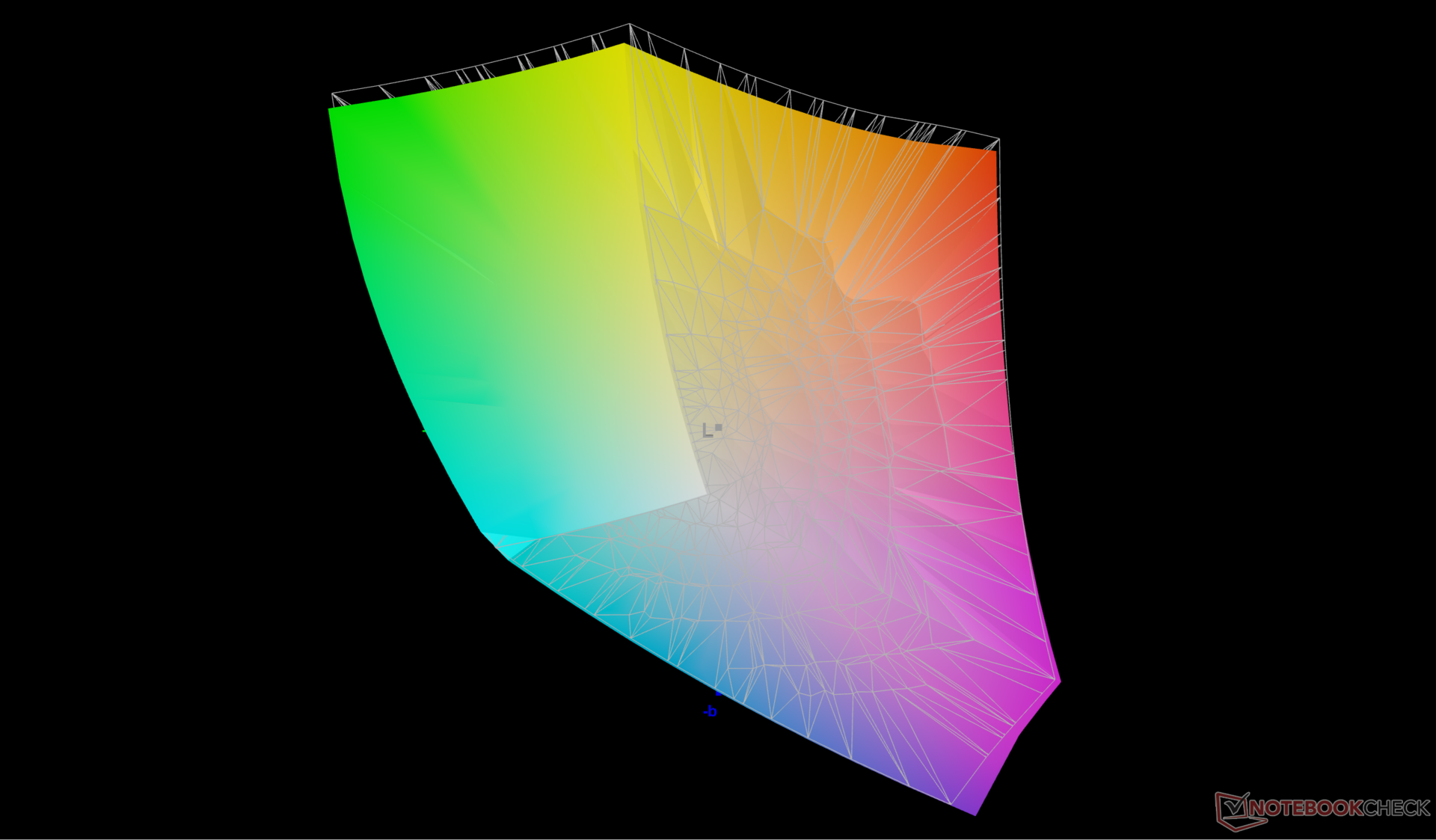 La température de couleur est froide dès la sortie de l'emballage (7300). L'écran est par ailleurs calibré de manière satisfaisante par rapport à la norme P3.