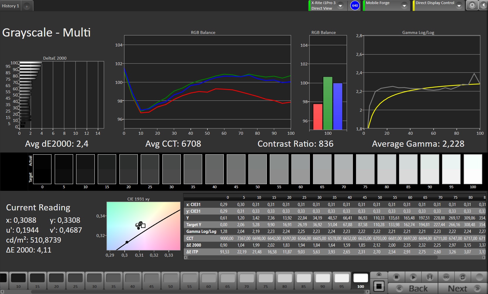 ΔE Greyscale Calman: 2.4 | ∀{0.09-98 Ø5}