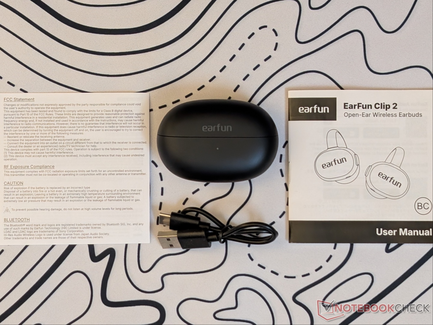 Les écouteurs EarFun Clip 2 sont accompagnés d'un étui rond et compact, d'un câble de charge USB et d'une documentation, avec un minimum de plastique.