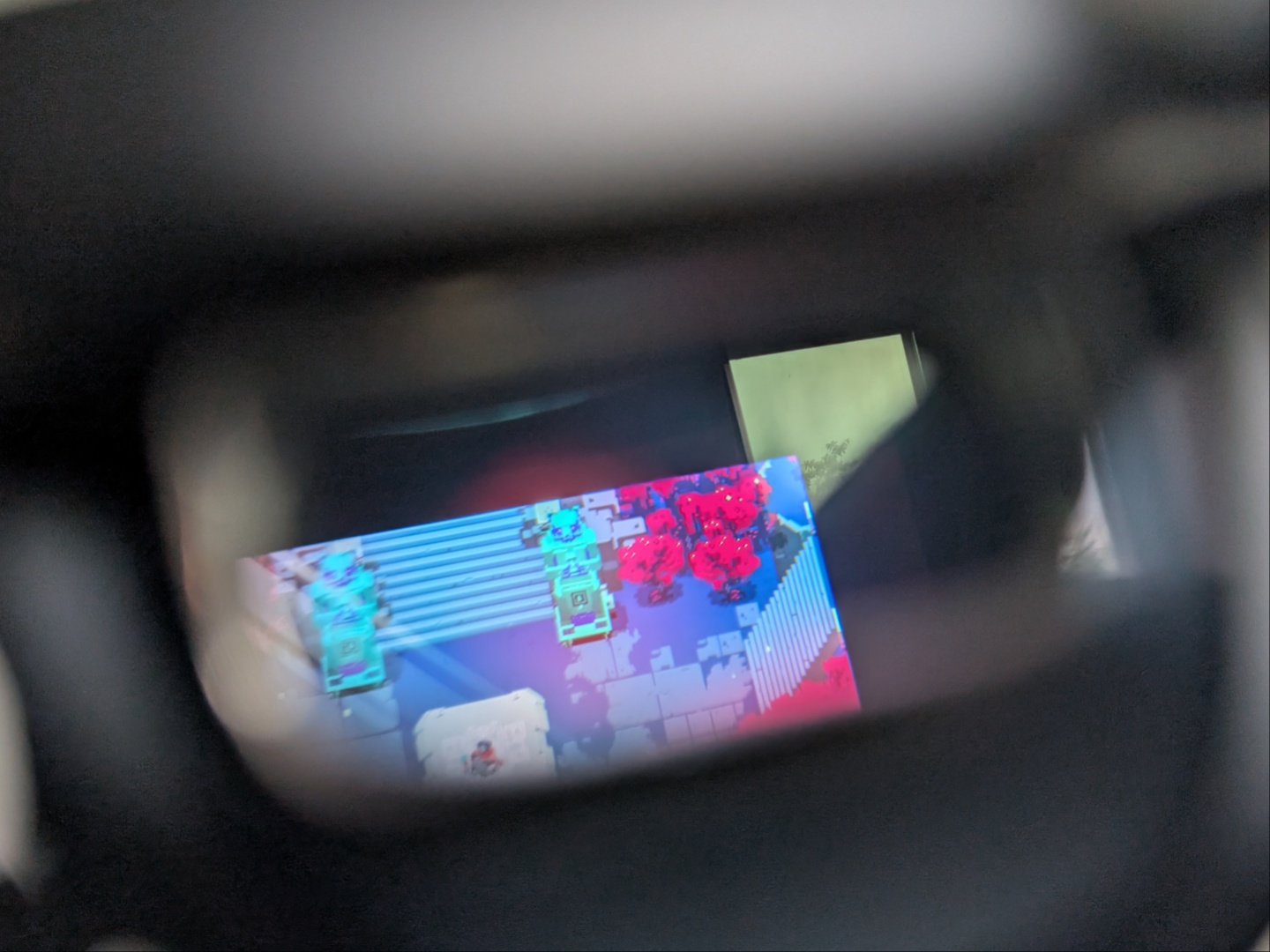 Le véritable avantage des lunettes AR devient évident lors des voyages de longue durée. J'ai eu l'occasion d'utiliser les Xreal One Pro lors d'un long vol et d'une escale, et elles ont rendu l'expérience très agréable. C'est aussi à ce moment-là que j'ai réalisé que dans un véhicule en mouvement, c'est le mode "suivi" qui fonctionne, car l'écran commence à dériver en mode "ancrage". Regarder des films dans un avion avec les One Pro en gradation maximale et des écouteurs à réduction de bruit m'a plongé dans ma propre salle de cinéma. Après quelques heures de visionnage, j'ai dû laisser mes yeux se reposer, puis j'ai branché les lunettes sur le Steam Deck. Hyper Light Drifter sur un écran massif de 1080p pendant un vol est vraiment une expérience incroyable. Quelle époque pour être en vie !