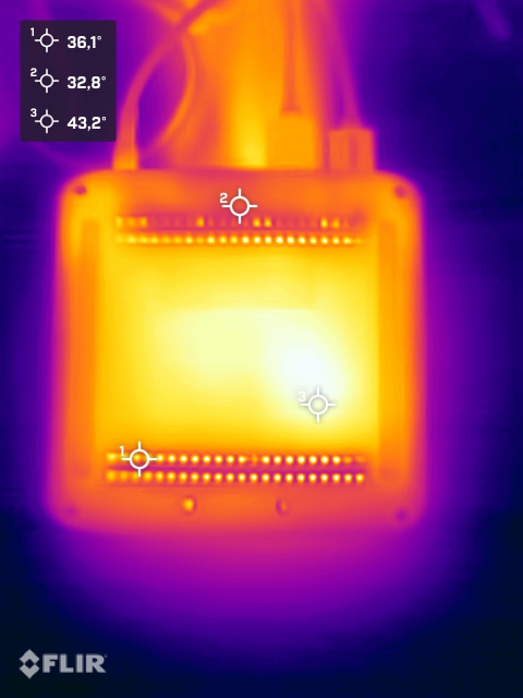 (-) Le fond chauffe jusqu'à un maximum de 46.5 °C / 116 F, contre une moyenne de 36.3 °C / 97 F