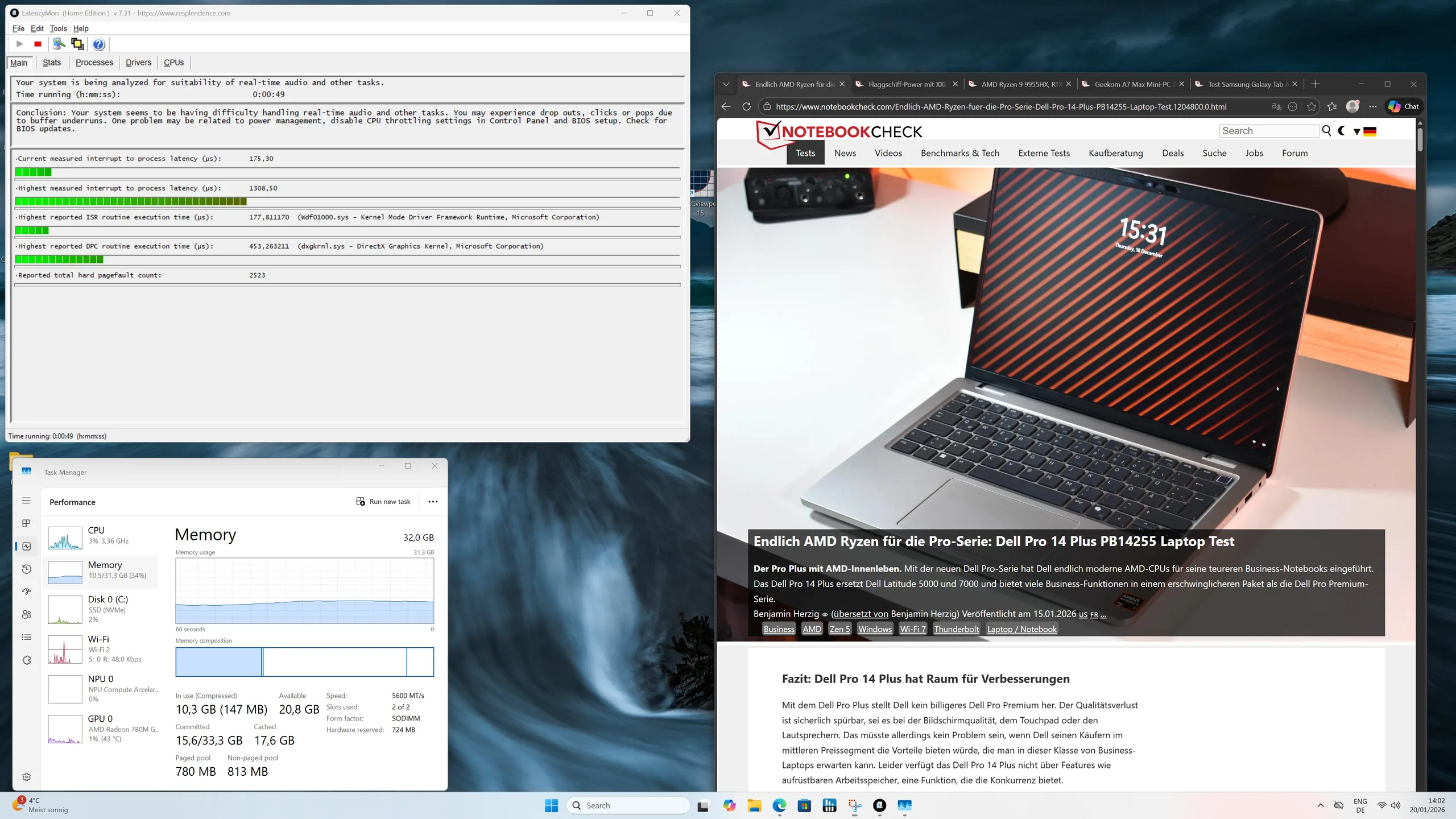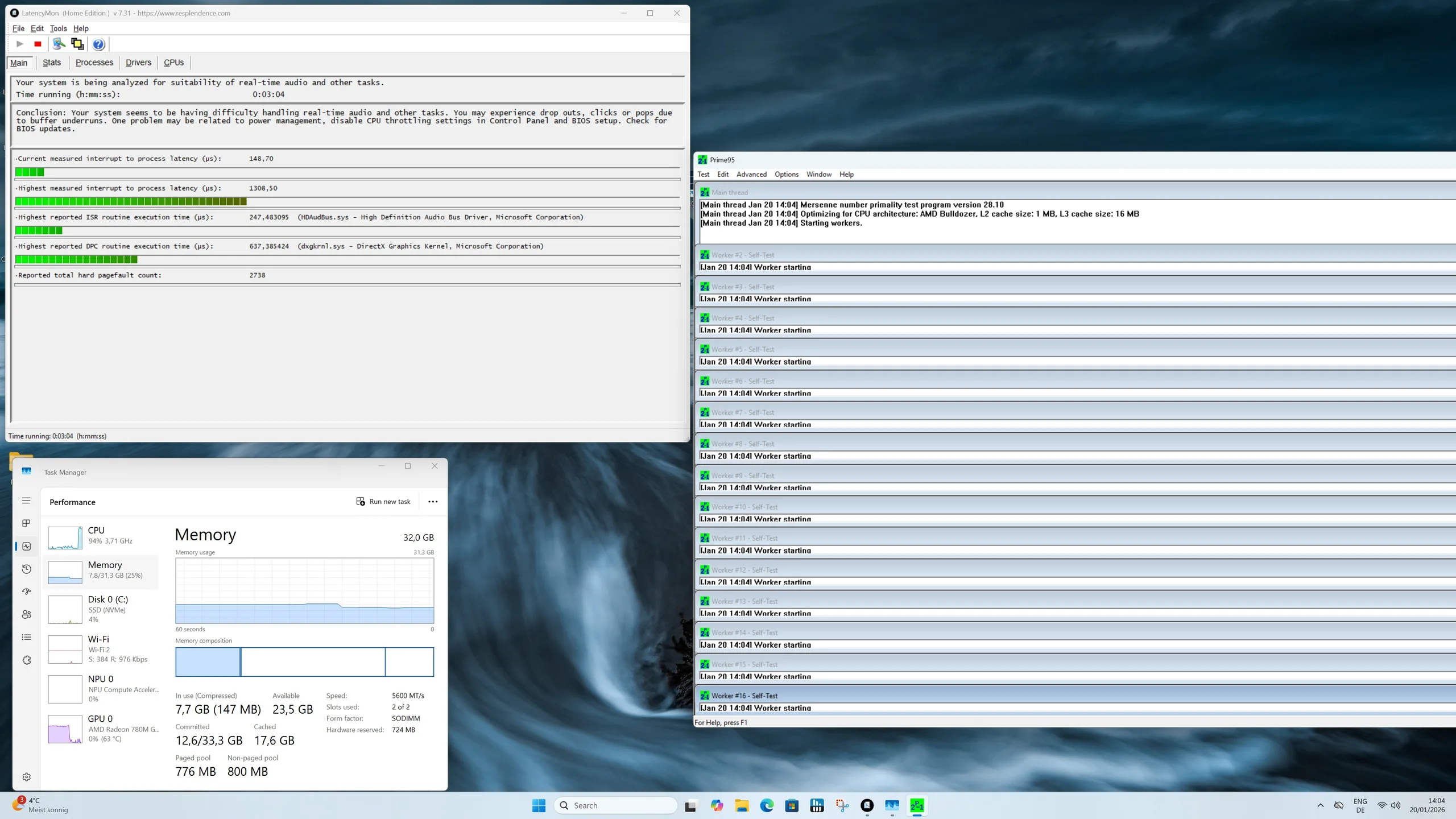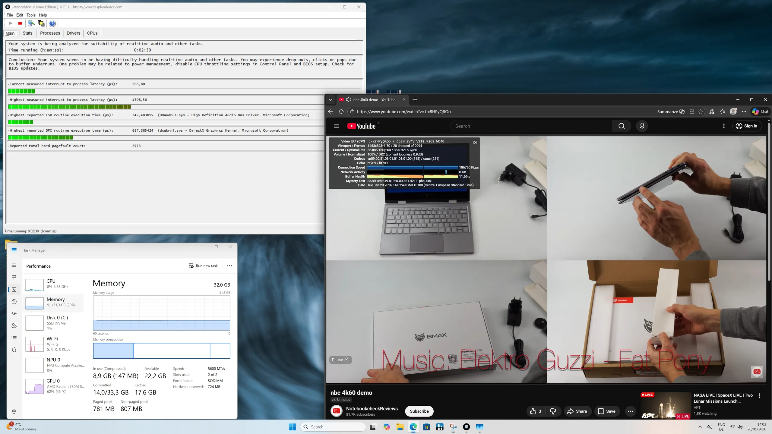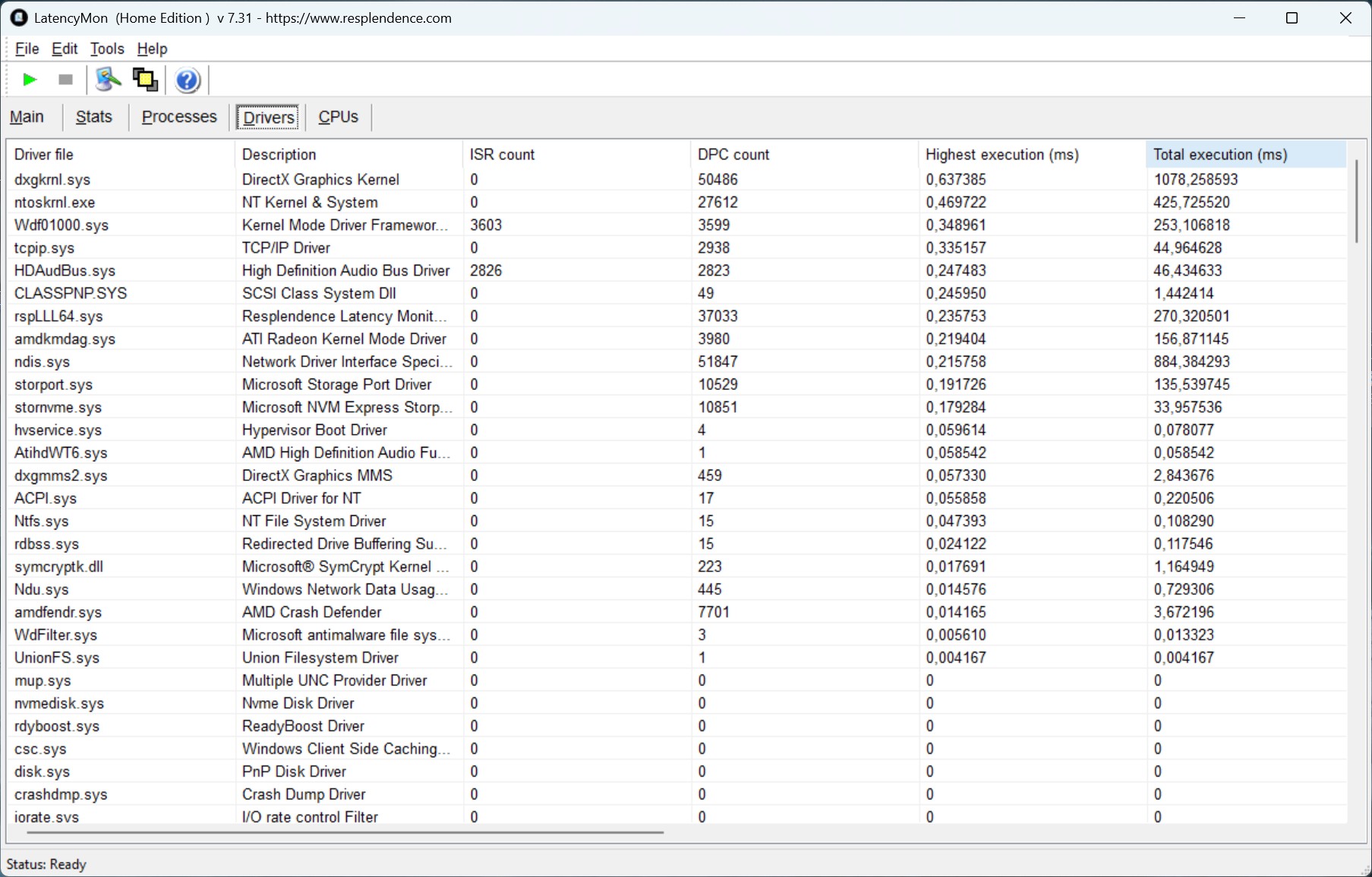 | DPC Latencies / LatencyMon - interrupt to process latency (max), Web, Youtube, Prime95 | |
