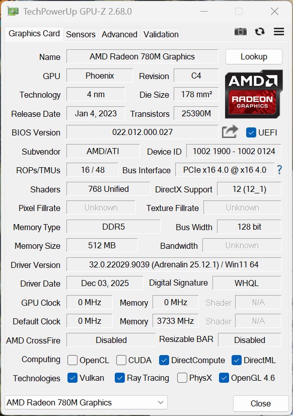 L'Alliwava GH8 utilise la carte AMD Radeon 780M intégrée, qui est également utilisée dans de nombreux autres mini PC actuels et offre donc des performances graphiques similaires. Les différences de performances résultent principalement de la consommation d'énergie, de la conception du refroidissement et de la configuration de la mémoire vive. Par conséquent, notre appareil de test se situe une fois de plus au milieu de la comparaison.