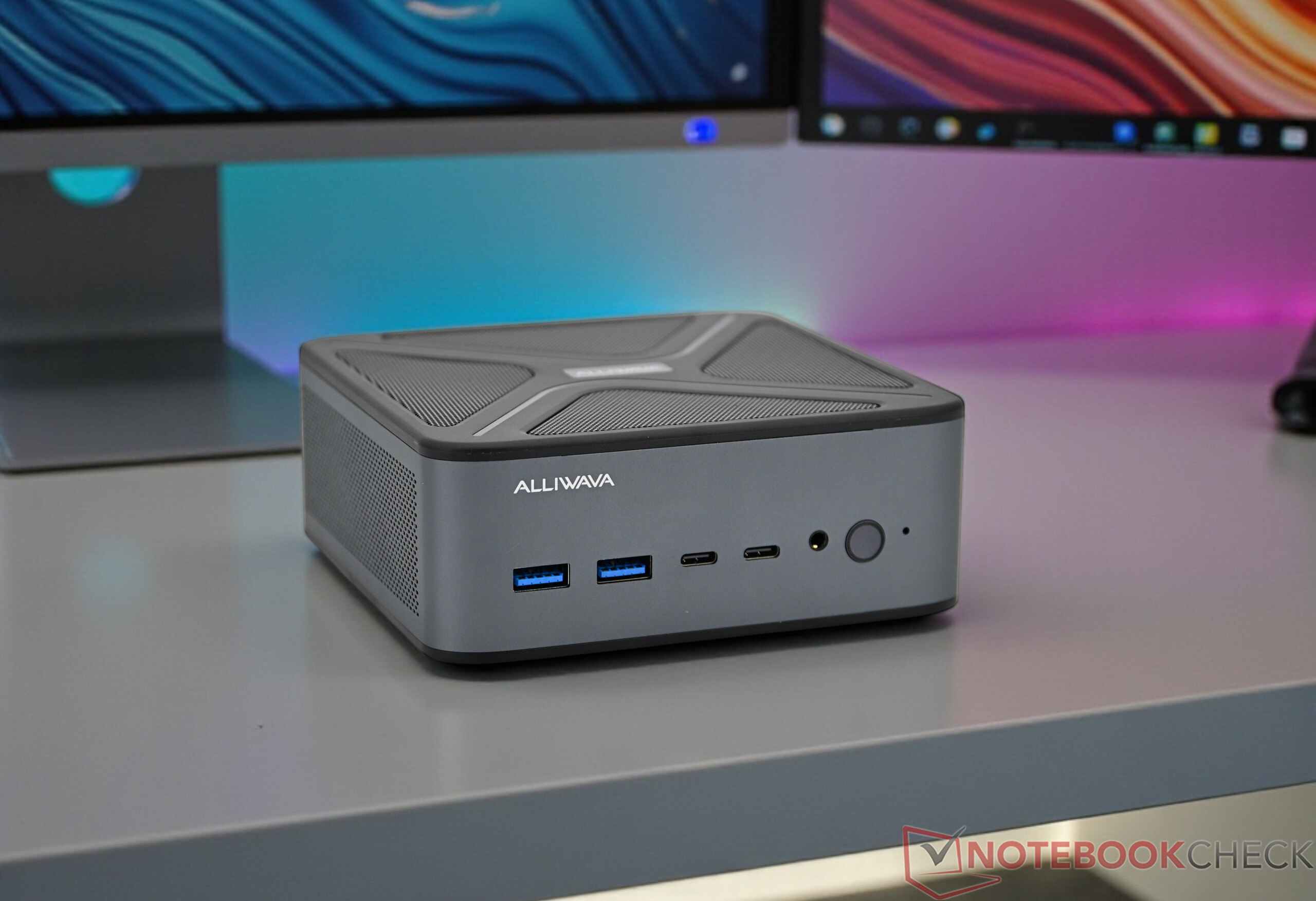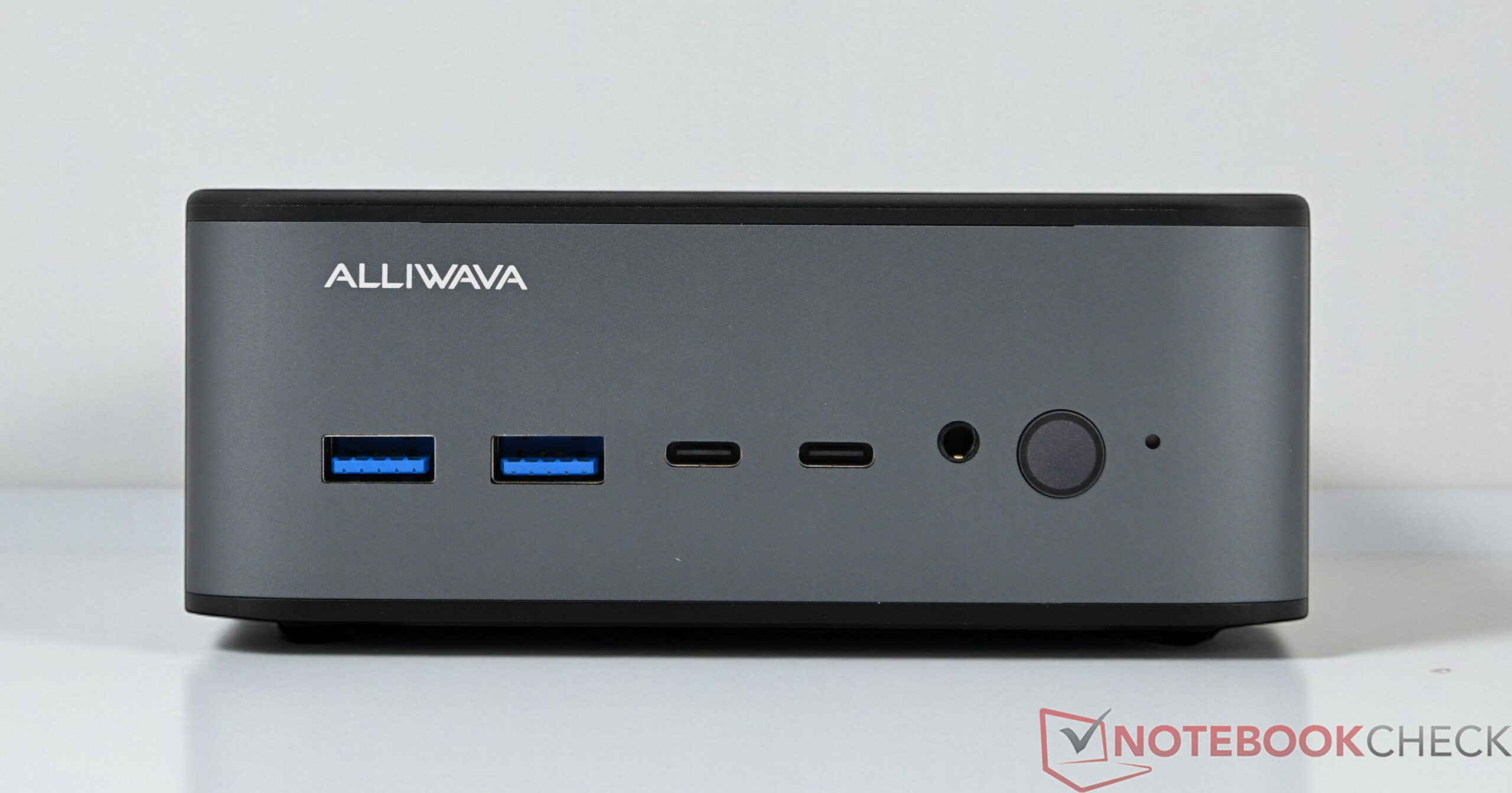 L'Alliwava GH8 est logé dans un solide boîtier en aluminium et se distingue par ses dimensions compactes et son poids d'environ 500 grammes. Alors que le corps du boîtier est en métal, des éléments en plastique sont utilisés sur le couvercle et le dessous, ce qui ne nuit que légèrement à l'impression générale de qualité et de robustesse. La connectivité est pratiquement répartie à l'avant et à l'arrière et couvre de manière fiable les besoins typiques du bureau et de la maison. L'interface USB4, qui prend également en charge l'utilisation de cartes graphiques externes, mérite une mention spéciale. L'équipement de base solide comprend également deux ports Ethernet 2,5 Gigabit et un WLAN, ce qui signifie que l'Alliwava GH8 est également bien positionné en termes de connectivité.