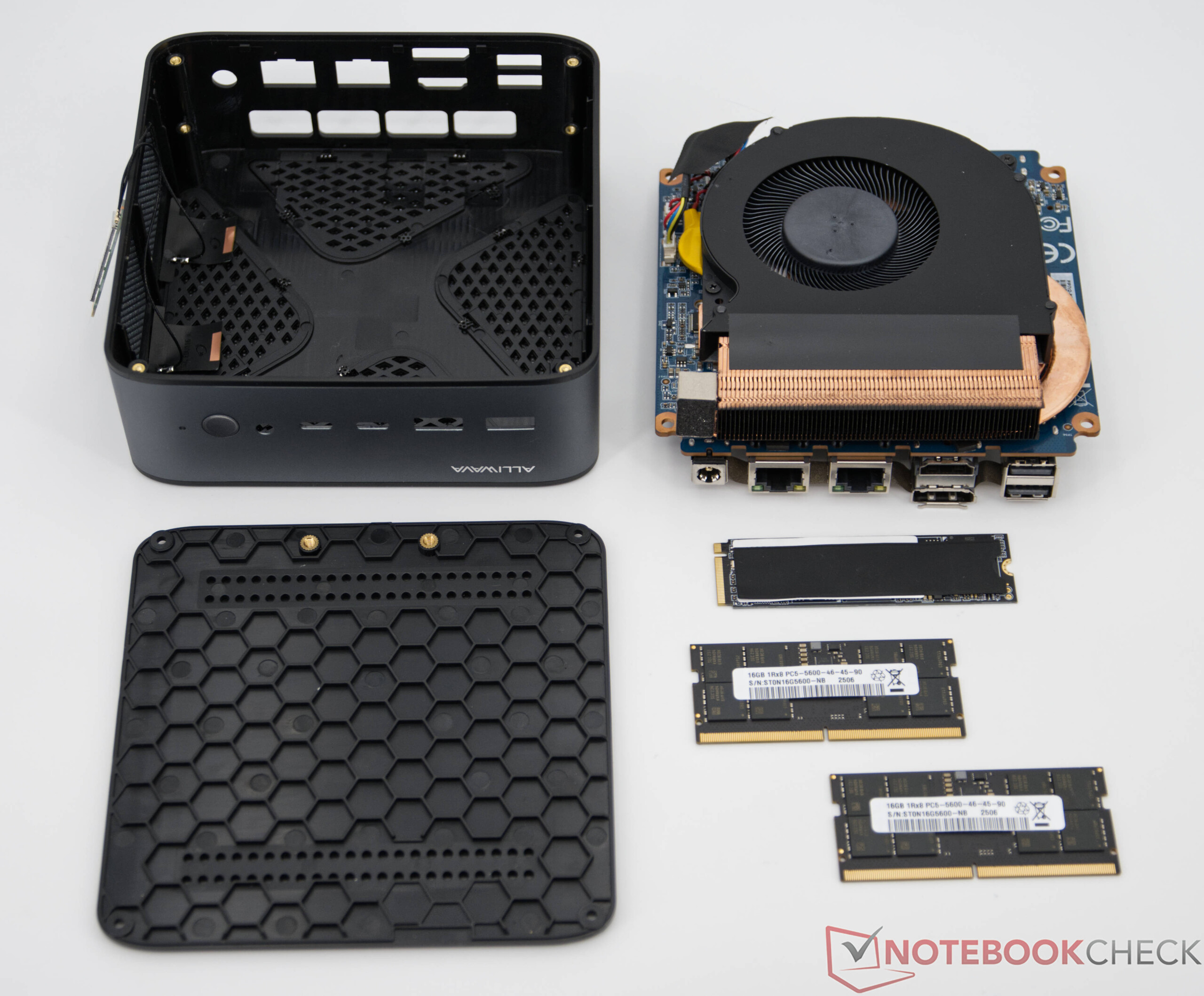 L'Alliwava GH8 est livré d'usine avec la RAM et un SSD installés et est donc prêt à être utilisé immédiatement. Le boîtier peut être facilement ouvert pour des mises à jour ultérieures, la RAM, la mémoire de masse et le module WLAN étant facilement accessibles et remplaçables.