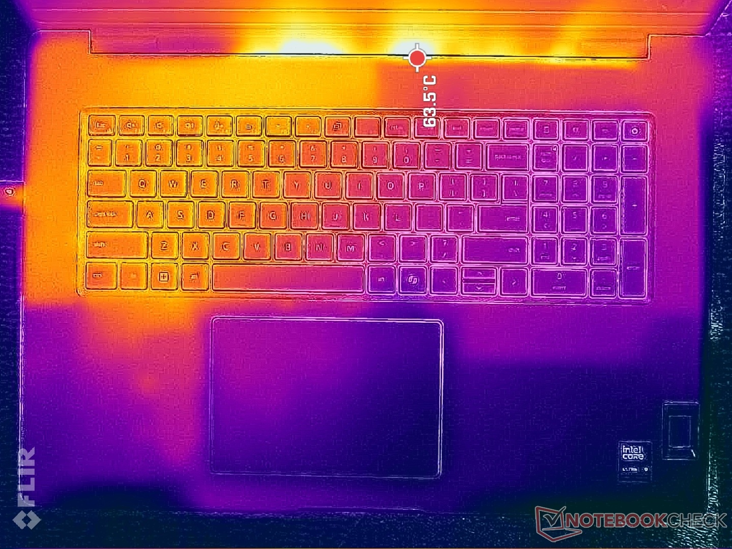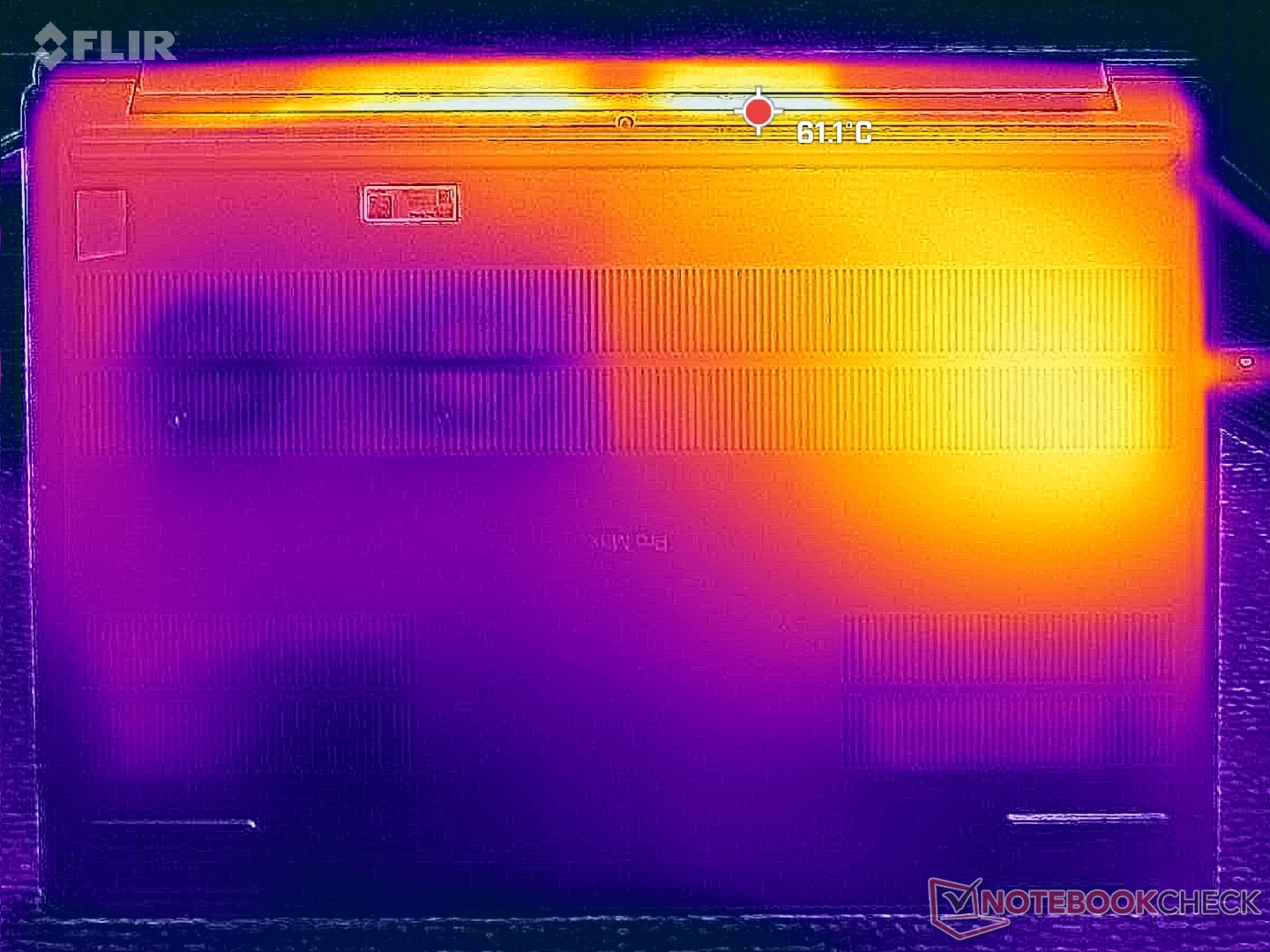 (±) La température maximale du côté supérieur est de 44.8 °C / 113 F, par rapport à la moyenne de 38.2 °C / 101 F, allant de 22.2 à 69.8 °C pour la classe Workstation.
