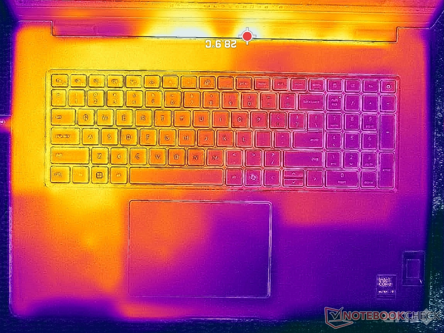 La consommation en mode ralenti peut varier de 6 à 32 W si l’ordinateur est réglé sur la luminosité maximale et que le GPU discret est actif. Ce minimum est inférieur à celui de la plupart des autres ordinateurs portables de 18 pouces, ce qui explique la durée de vie relativement longue de la batterie dans la section suivante.